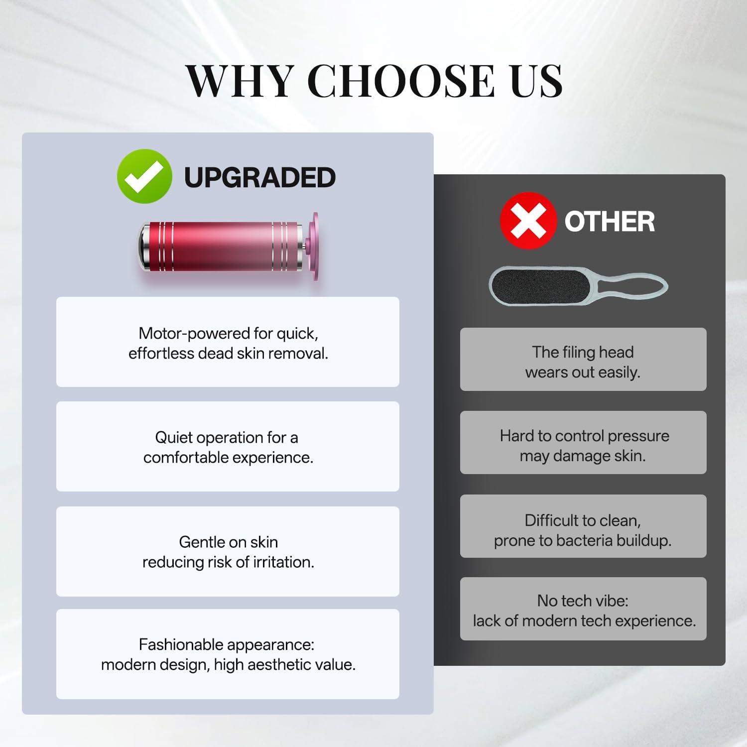 - 【Lightweight & Stylish】 Crafted with a lightweight and fashion-forward gradient pink finish, this foot grinder effortlessly fits in your hand for comfortable, slip-free control. Its textured non-slip grip and smooth rounded edges prevent accidental drops, while the cool metallic surface adds a touch of luxury. This pedicure tools for feet is a stylish choice for all genders that balances beauty and practicality