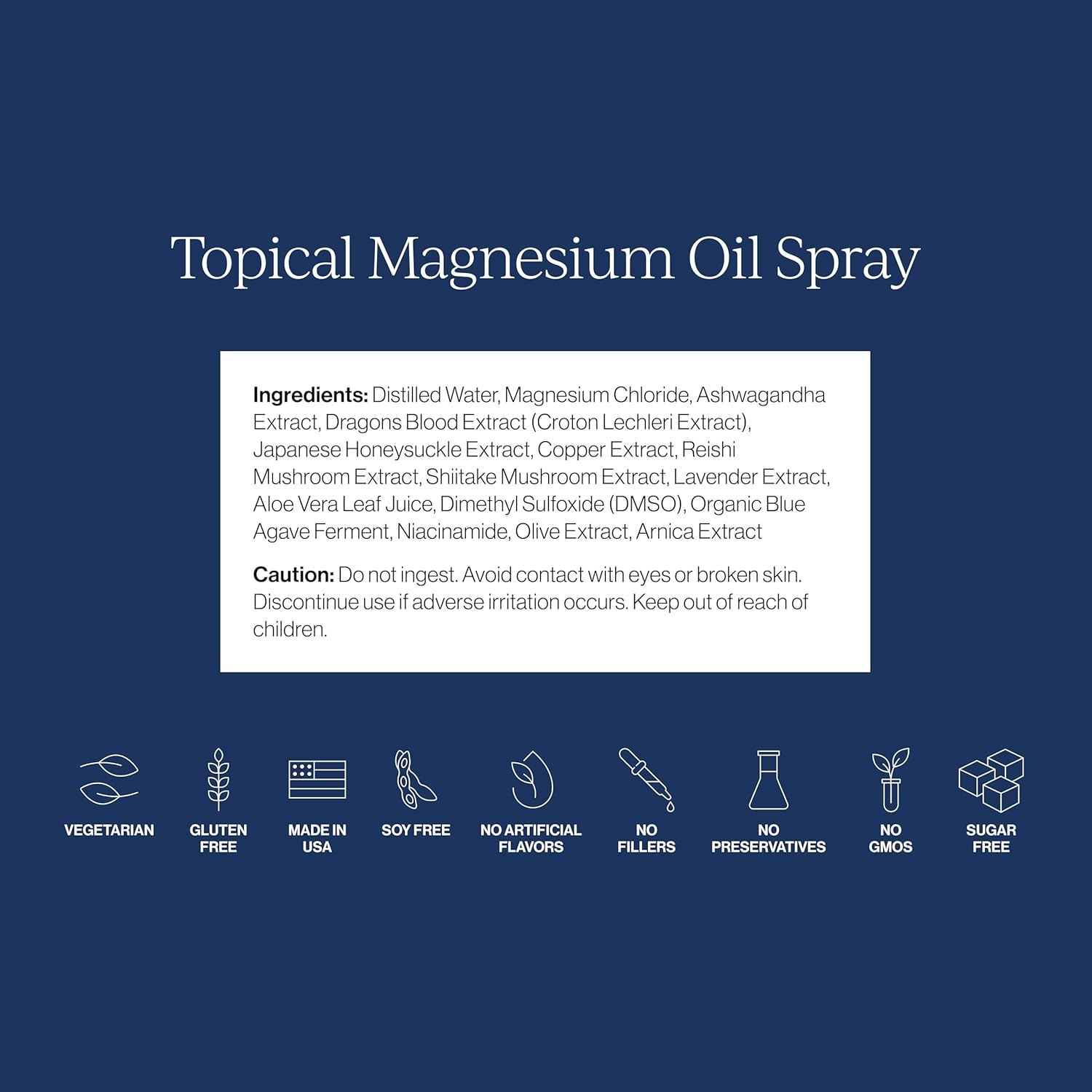 - CYMBIOTIKA Topical Magnesium Oil Spray for Body, USA Made, Supplement for Leg Cramps, Muscle, Joint Health & Sleep Support, Includes Magnesium Chloride, Lavender Extract, Aloe Vera, 2pck (6.8 fl oz)