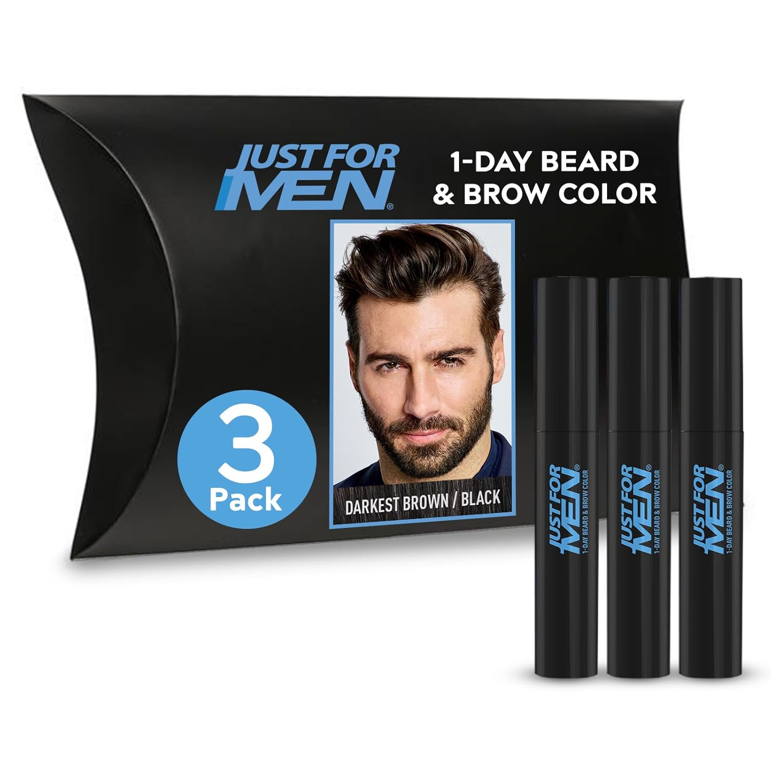 - Just for Men 1-Day Beard & Brow Color, is a brush-in/wash-out dye-free color to temporarily cover grays and fill in thin, patchy areas for a thicker, well-defined look