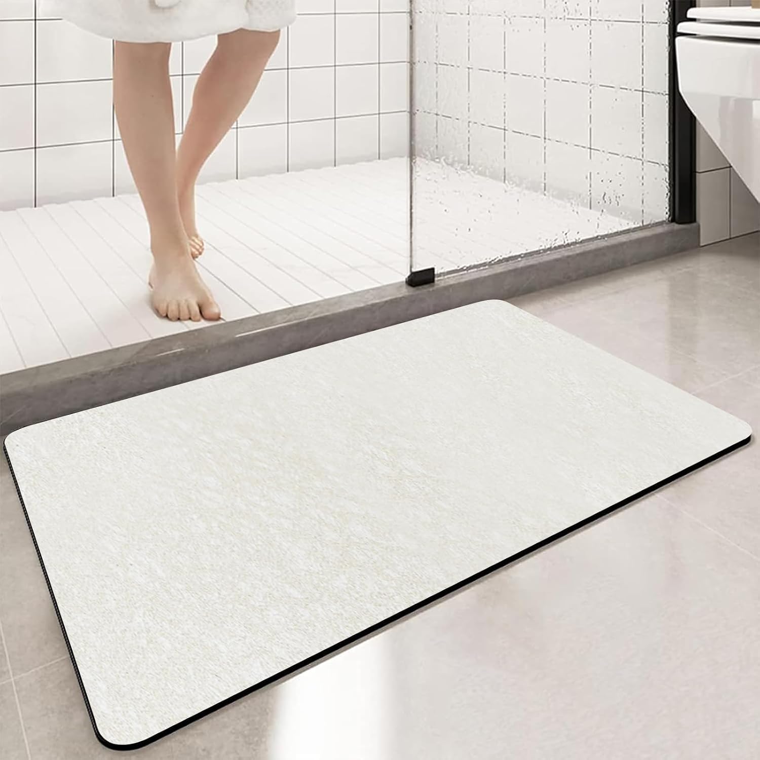 Diatomaceous Earth Bath mat Bathroom Rugs Super Absorbent Quick Dry Non Slip Bath Mat Thin Bathroom Floor Mats Fit Under Door-Shower Rug for in Front of Bathtub Shower, Beige, 15.7"x35.4"