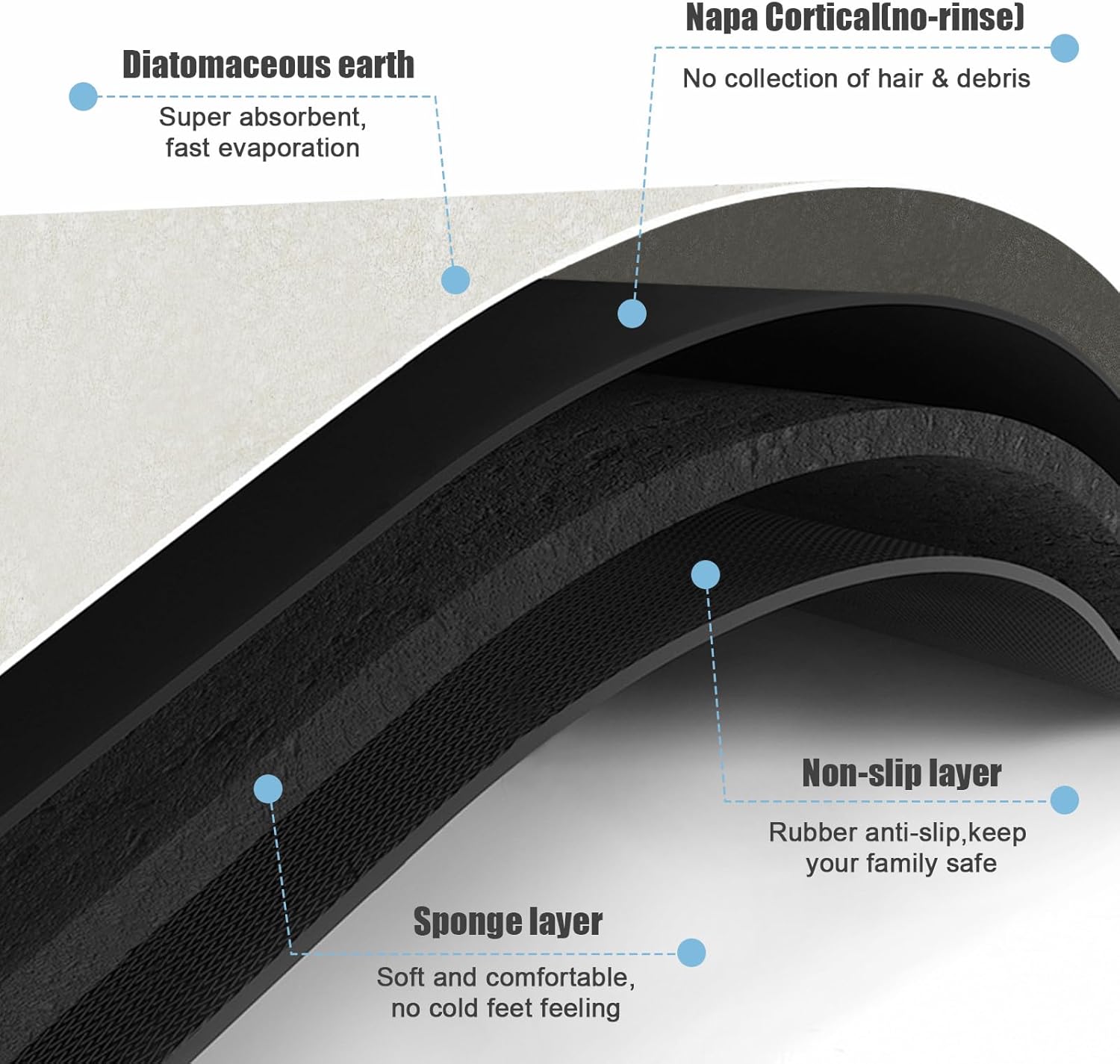 - 【Easy to Clean】Bath mats with new hair-free technology layer, water evaporates quickly, dirt attach to the surface,stain-resistant and easy to clean. Therefore, you don’t need to dry or clean the washable bath mat every day. If you want to clean it after long-time use, simply wipe the washable bathroom rugs with a wet cloth, or rinse it with shower nozzle. The bath rug for bathroom looks as good as new now