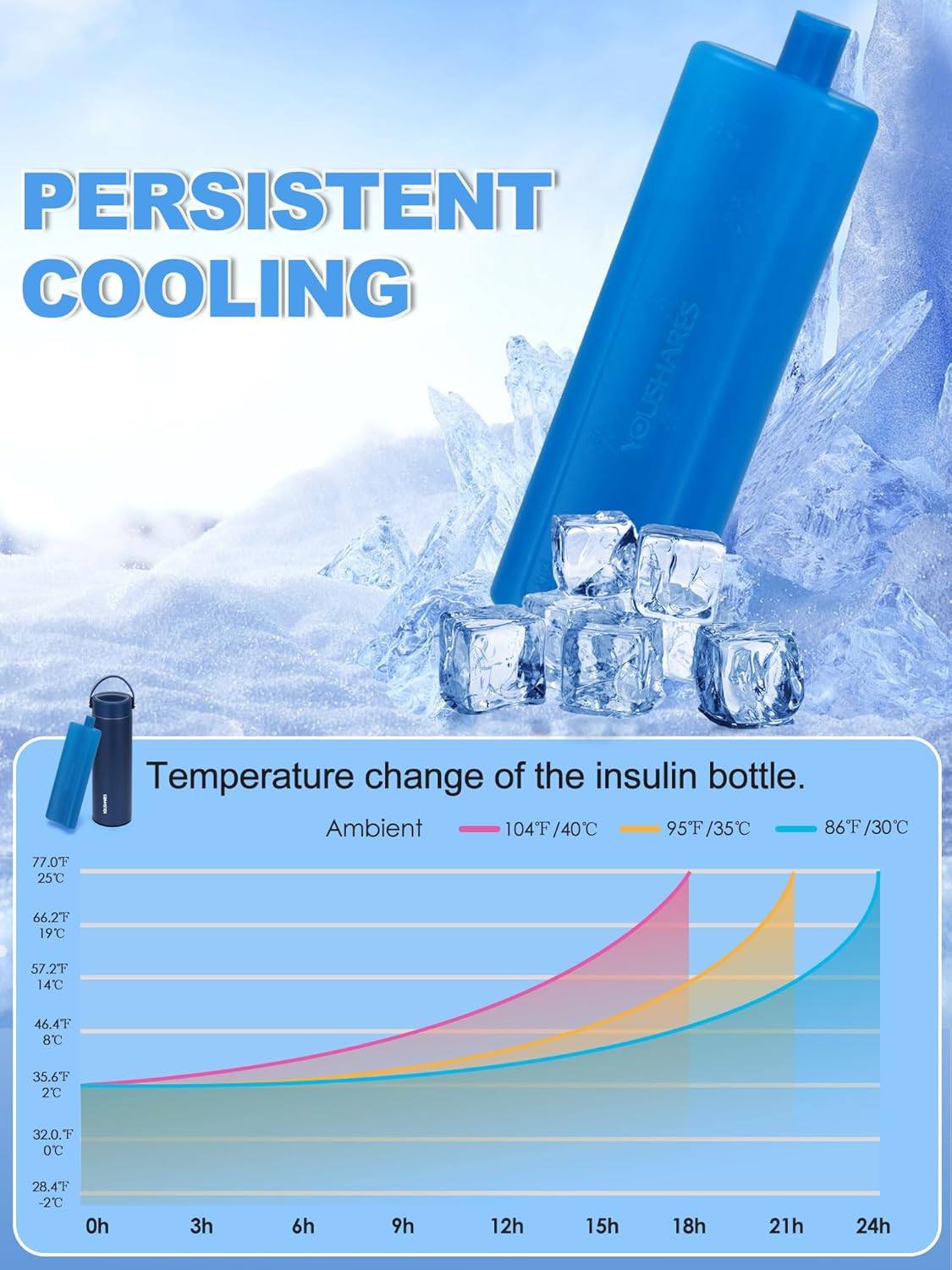 - ICE PACKS FOR INSULIN - The hard insulin gel pack is specially designed for YOUSHARES insulin bottle. Placing the ice box in the insulin travel case can effectively maintain low temperatures, ensuring the stability of insulin and other medications for a certain period. Note, the ice packs is designed for YOUSHARES Insulin bottles . If used for other products, please pay attention to whether the size is appropriate.
