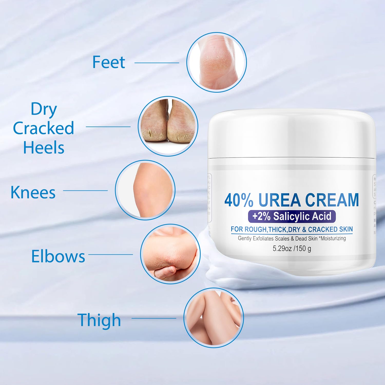 Urea Cream 40 Percent for Feet,40% Urea 2% Salicylic Acid Foot Cream,Foot Cream and Hand Cream with Cocos Nucifera Oil,Tea Tree,Aloe Vera,Vitamin E (5.29 OZ/150g)