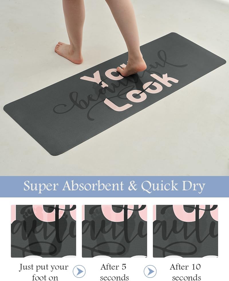 - Absorbent & Stain Resistant: Its specially engineered nano-porous smooth surface instantly absorbs dripping water, leaving no conspicuous watermarks or stains. Whether stepping out of the shower or washing your hands, you can trust this super absorbent bath mat to keep your space clean and safe.