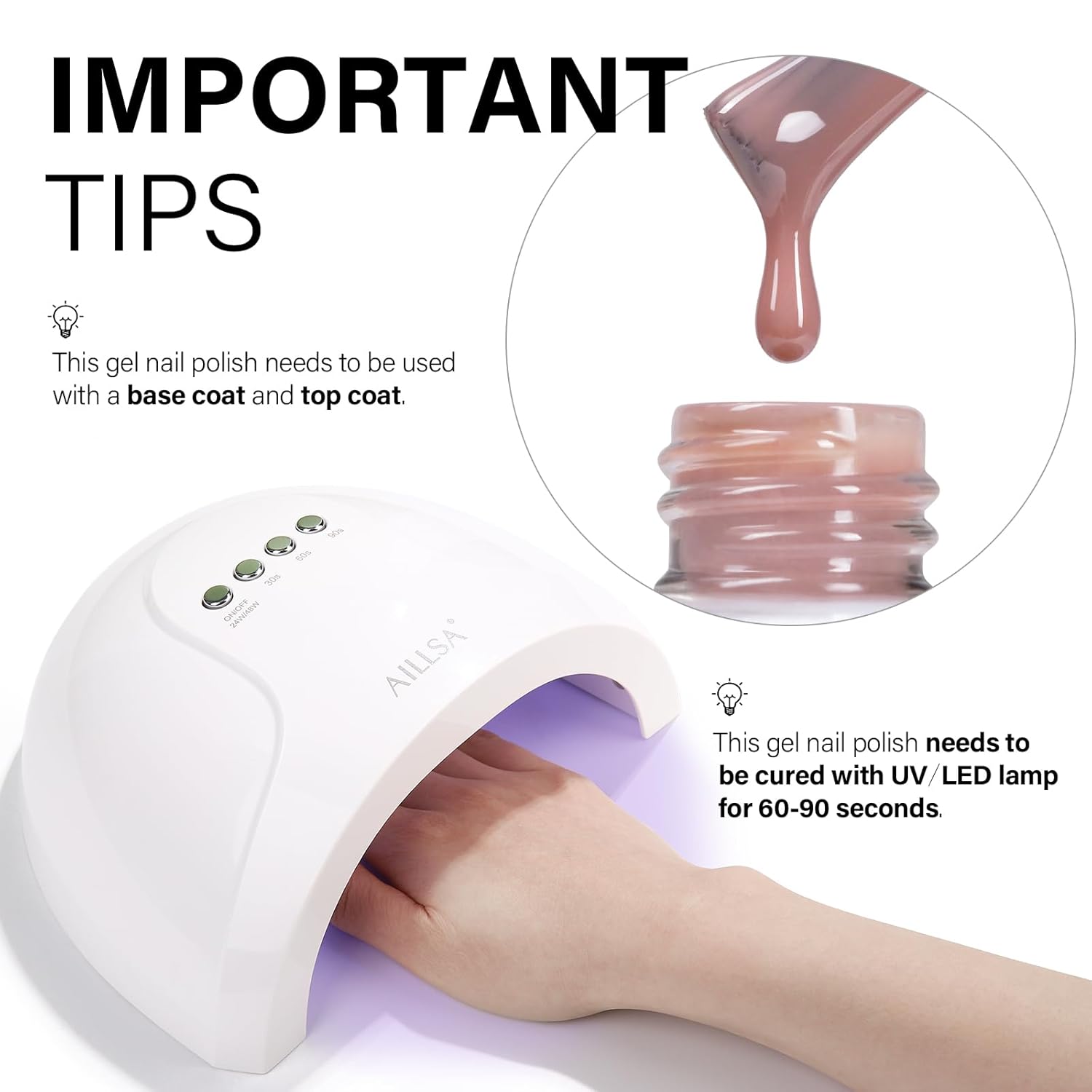 - JELLY STYLE - Are you still looking for a trendy nude gel polish for 2025? AILLSA gel nail polish nude colors creates an understated yet premium translucent nude style for you.It can be used for daily life, work and dating. You can also use it as a base gel to create your own French nail art.