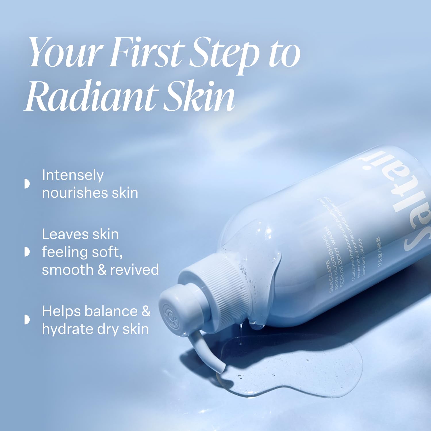 Saltair Body Wash, Seascape 2-Pack. Moisturizing Body Cleanser with Monoi Oil and Cupuacu Butter. Luxury Shower Gel for Women and Men. Vegan, Cruelty-Free, Paraben-Free. 2x 17oz Pump Bottles