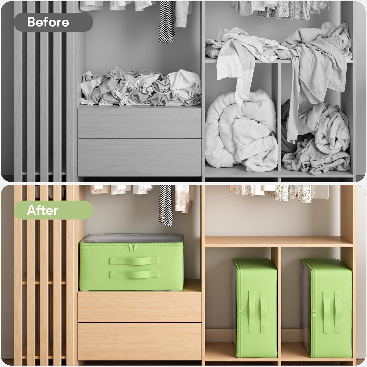 Clothes Storage Bags, Foldable Thick Fabric Blanket Storage Bags, Large Clear Window & Carry Handles, Great for Clothes, Blankets, Closets, Pillows, Toys (Green, Extra-2Pack)