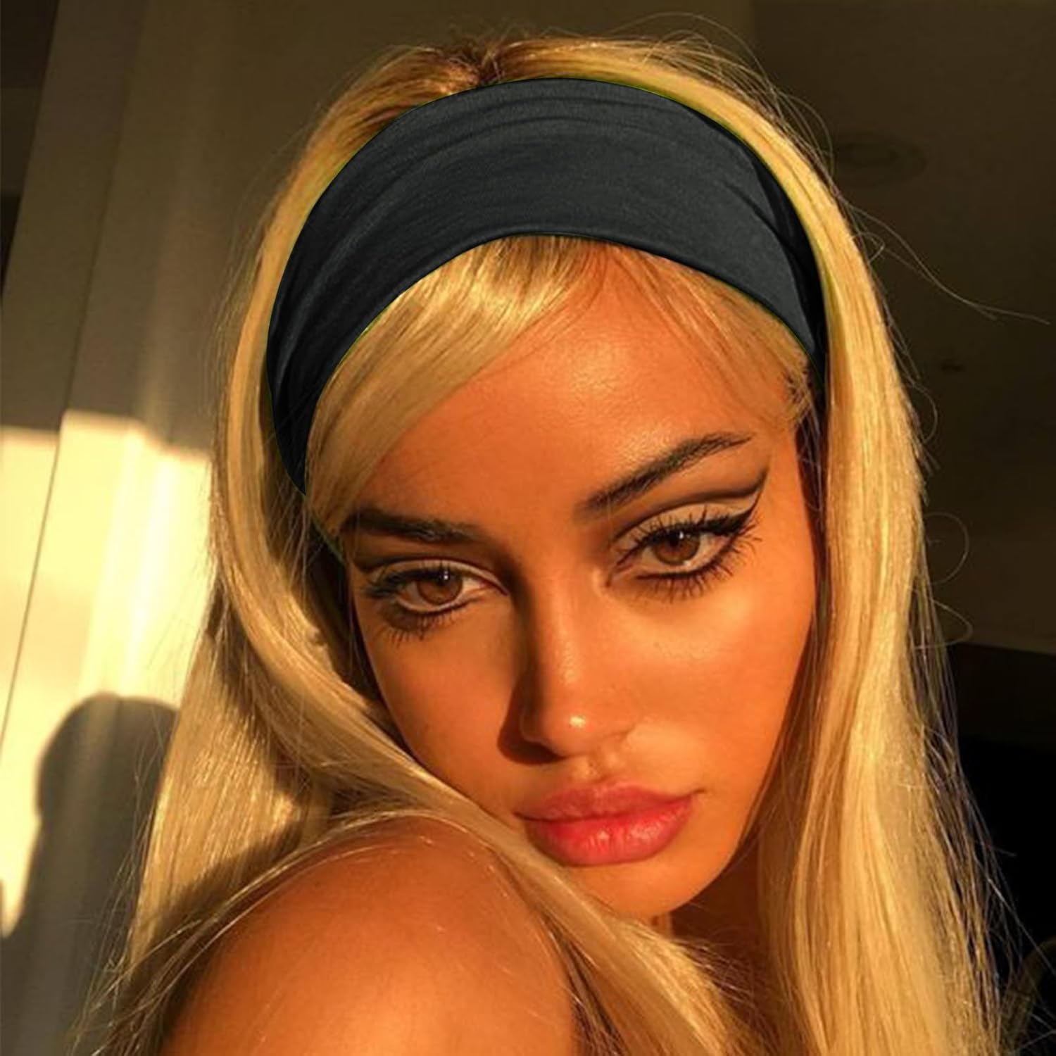 - 【Great Material】SOFT STRETCHY FABRIC, this women running headband is crafted from polyester and spandex blend fabric, lightweight and stretchy, offering excellent performance for wicking, durability and abrasion resistance. This yoga headband delivers a supportive fit for all sports need.