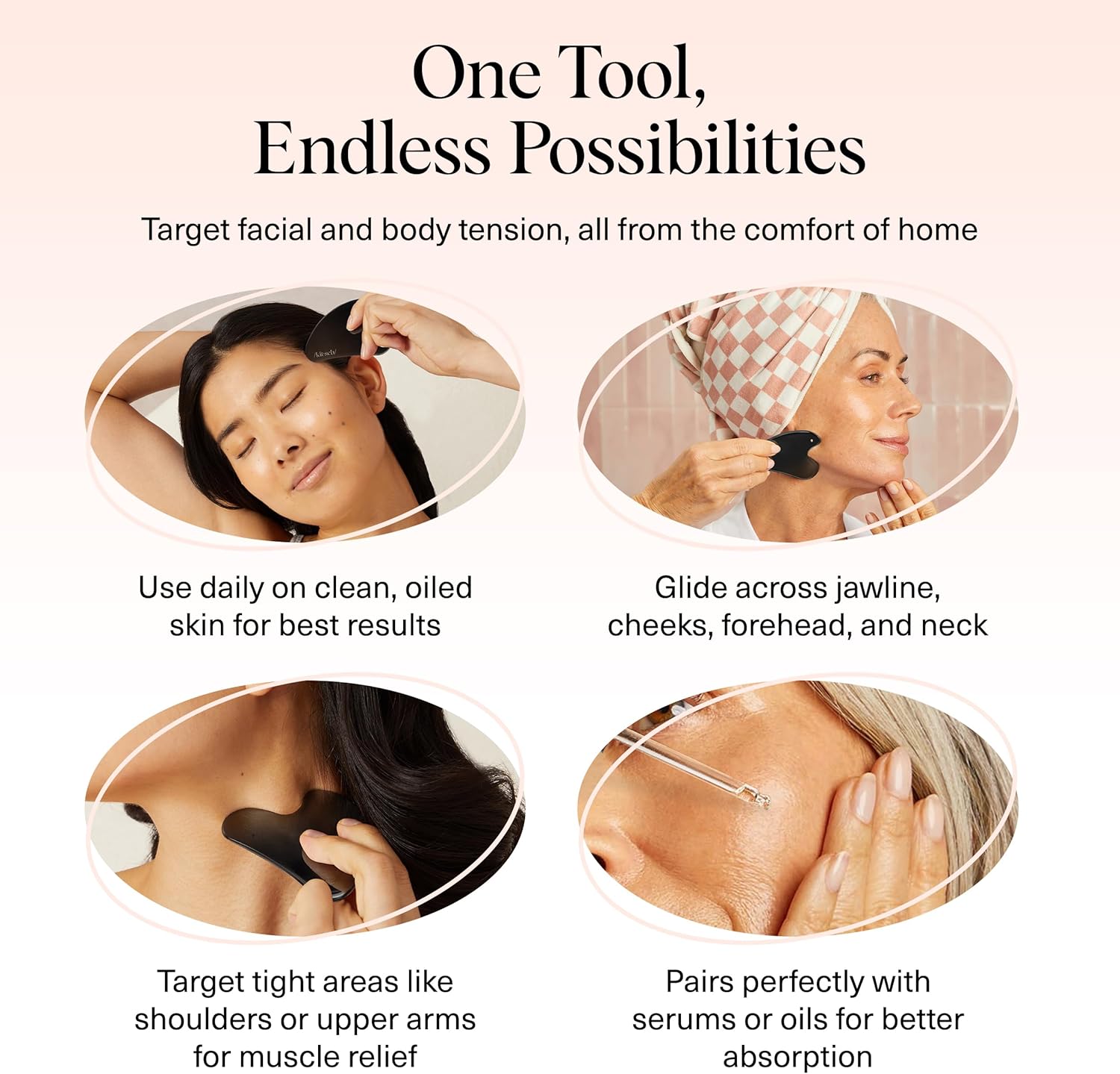 - PREMIUM QUALITY & DURABILITY β Crafted from high-grade 100% stainless steel, our face gua sha tool is designed for exceptional durability and longevity. Unlike traditional gua sha stone tools, it resists rust and tarnish, ensuring a lifetime of effective use.