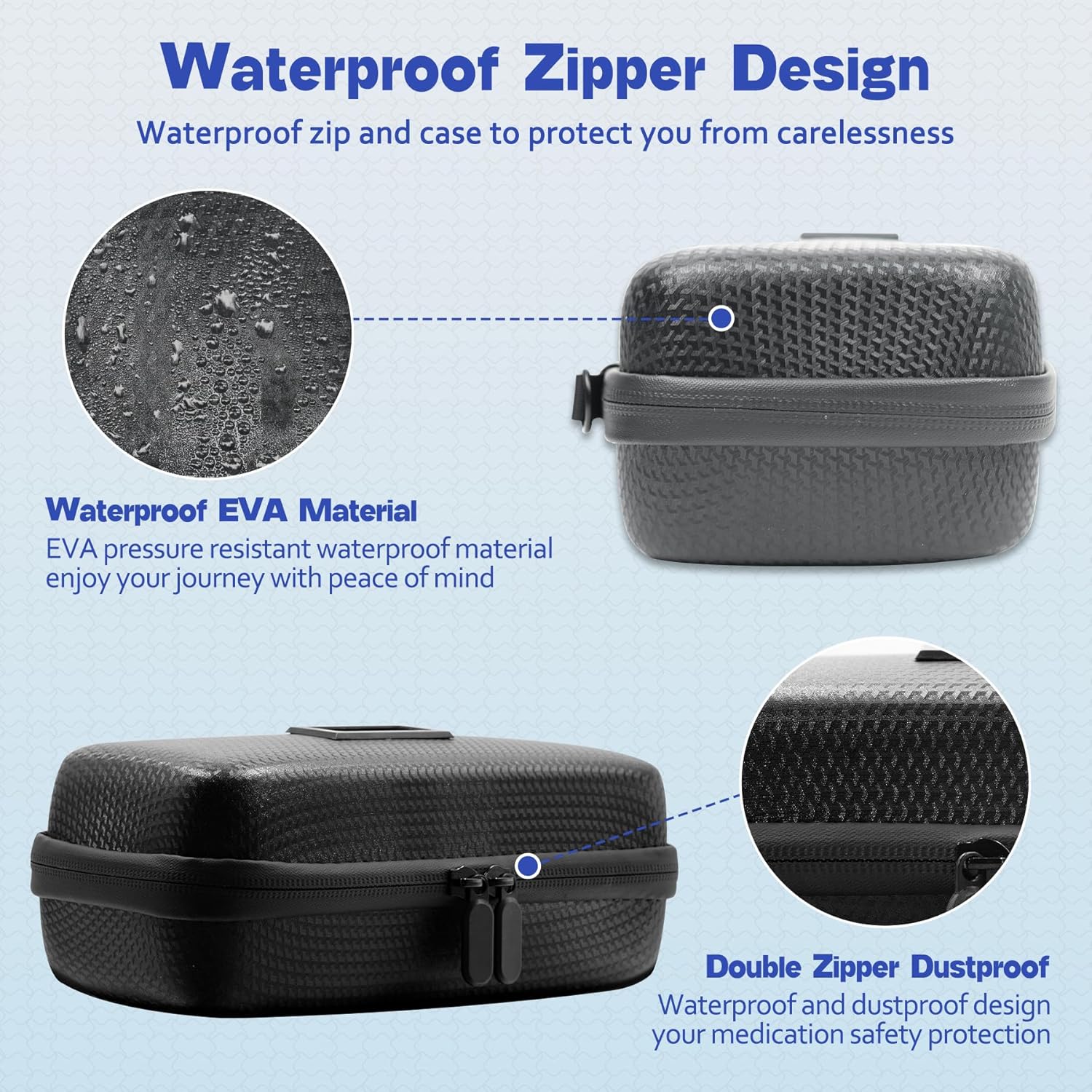 - Diabetic Medicine Cooling Bag: Crafted from pressure-resistant EVA shell and lined with high-density PE compartments, this refrigerated medicine organizer bag protects insulin pens, syringes, and glucose monitors from impacts, spills, and humidity. Watertight design preserves contents even in rainy conditions