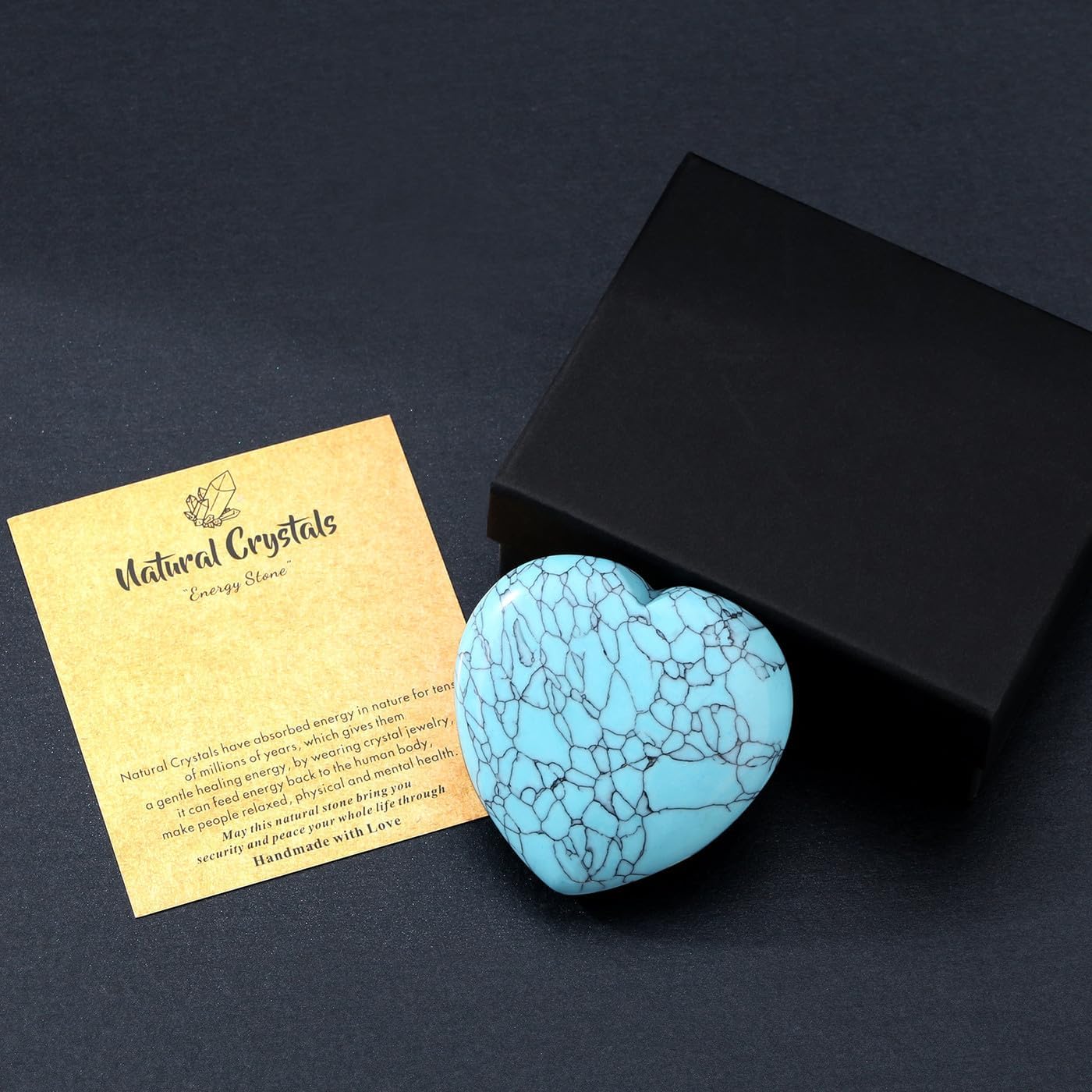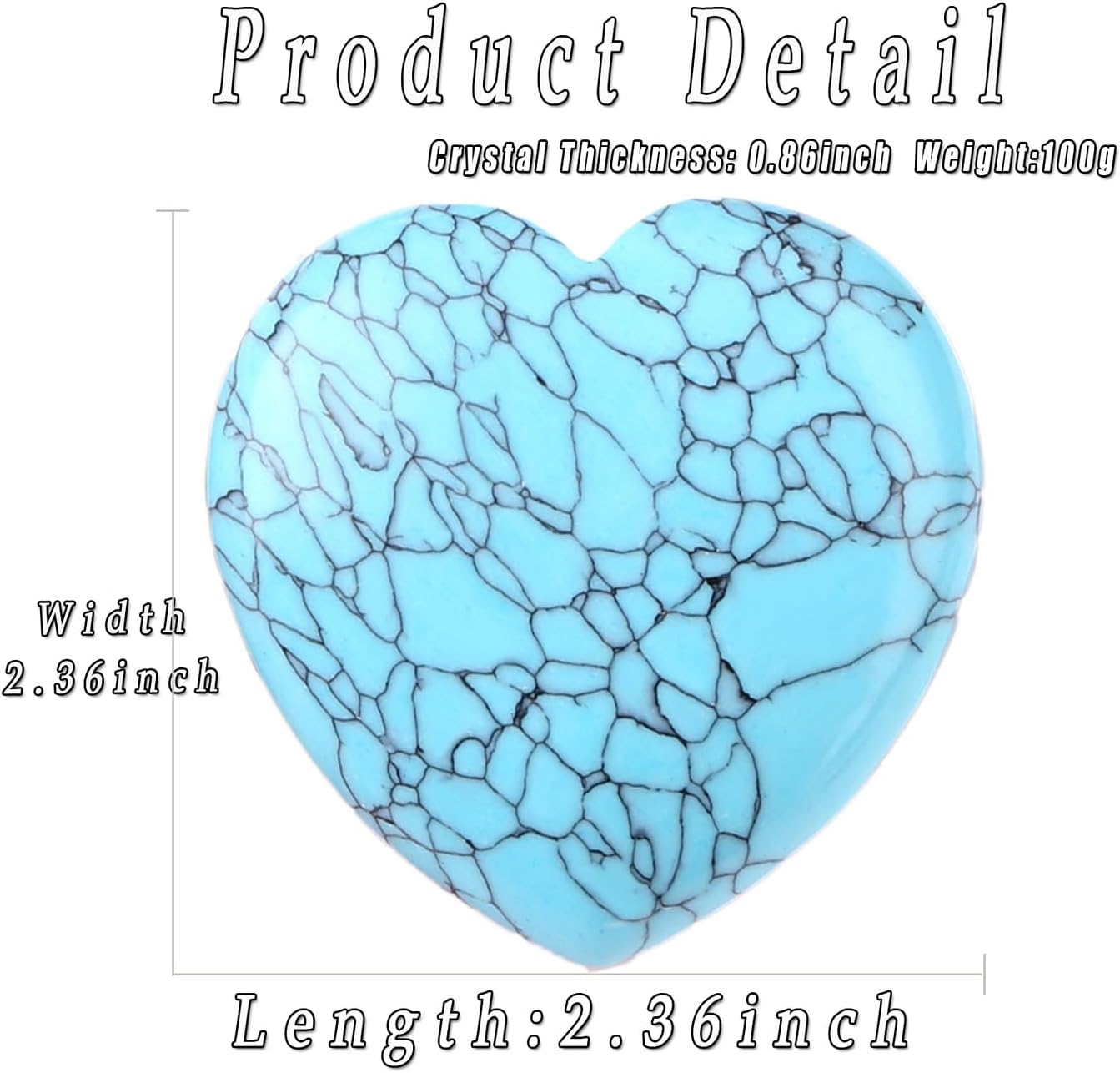 MAIBAOTA 60 mm Green Turquoise Crystals Large Heart Stone Healing Crystals Natural Crystal Heart Reiki Gemstone Polished Heart Shaped Rocks Meditation Mothers Day Crystal Gifts for Mom Her