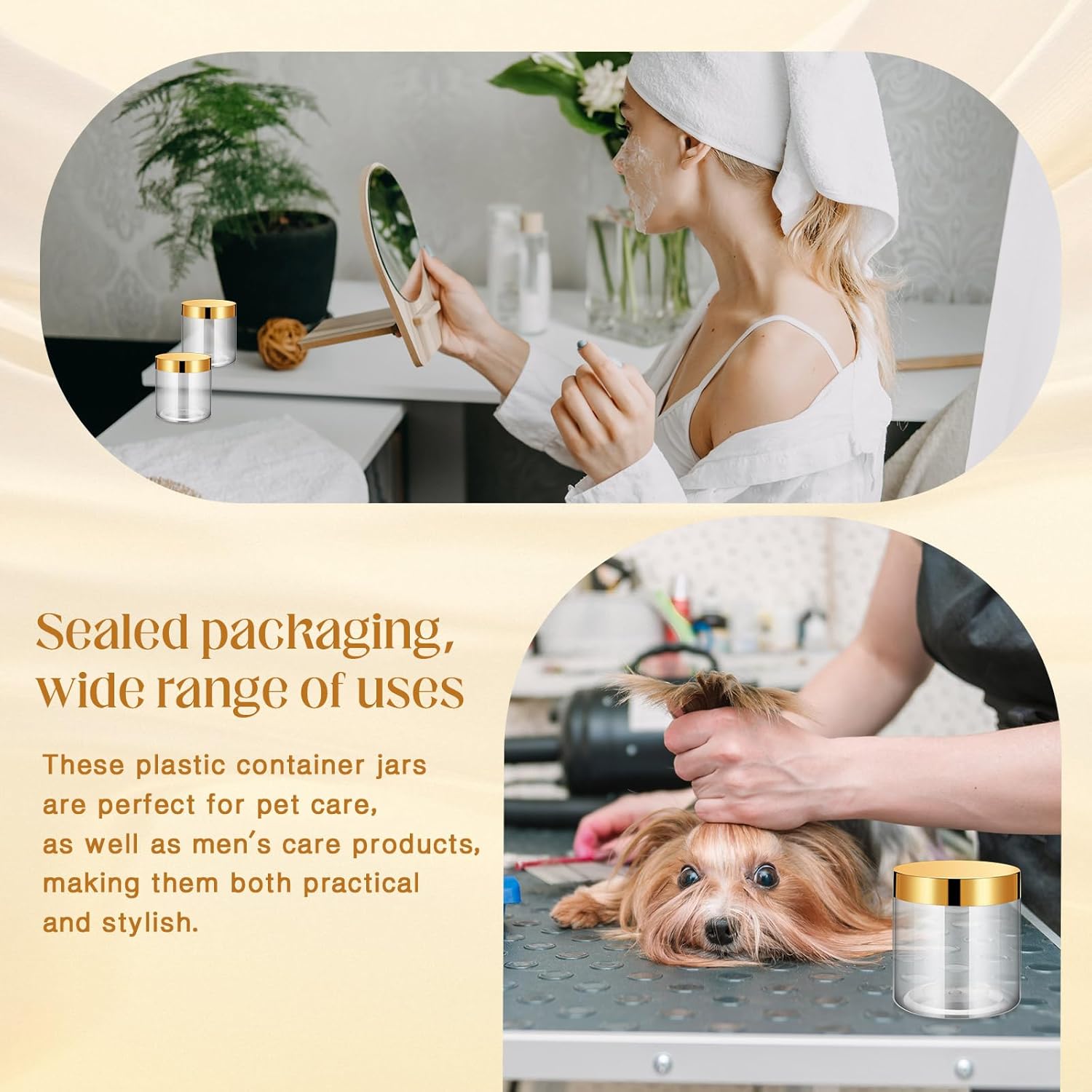 SATINIOR 12 Pack 16 oz Plastic Container Jars with Lids Round Clear Travel Cosmetic Container Slime Jars for Toiletries, Lotion, Cream, Ointments, Makeup, Rhinestone, Samples, Kitchen Storage(Gold)