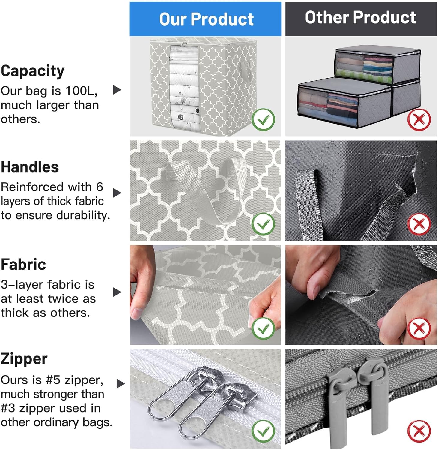 - Reinforced Handle: This storage bag is convenient to transport with a handle sewn with two layers of non-woven fabric and reinforced with strong stitching for added strength, the load-bearing capacity is doubled;