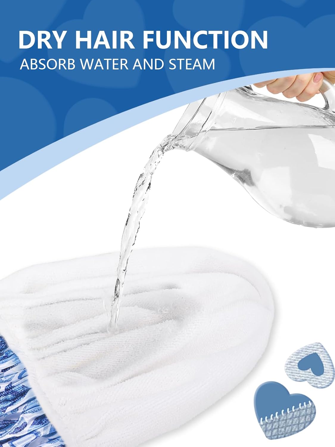 - Waterproof Material Upgrade: Waterproof memory foam has better waterproofing properties than ordinary coatings, preventing water from seeping in and sealing the head better. Terry cloth lined shower cap not only absorbs water but also prevents frizz