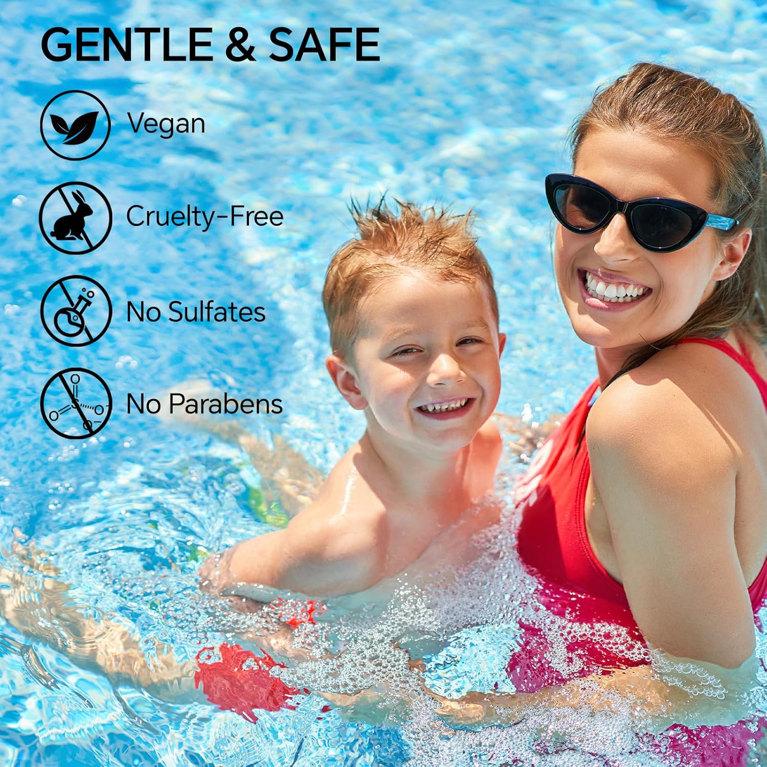 - Deep cleaning of chlorine residues: designed specifically for swimming, effectively neutralizing and removing chlorine, salt, and chemicals from the pool, avoiding dry, itchy, or allergic skin, and leaving the skin refreshed immediately after swimming