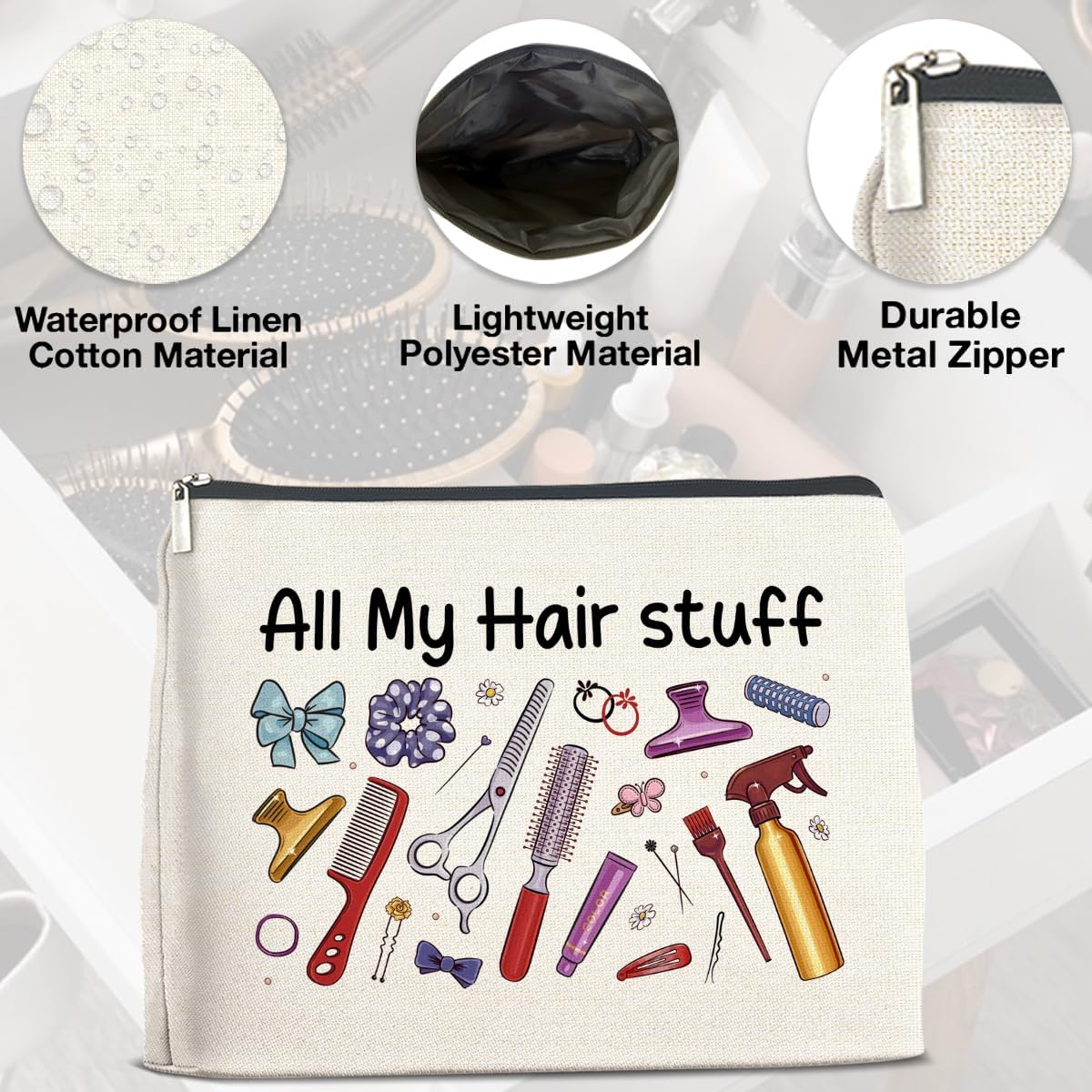 Hairstylist Gifts Makeup Bag Gifts for Women, Gift for Hairdresser Hair Stylist All My Hair Stuff Cosmetic Bag Zipper Makeup Pouch