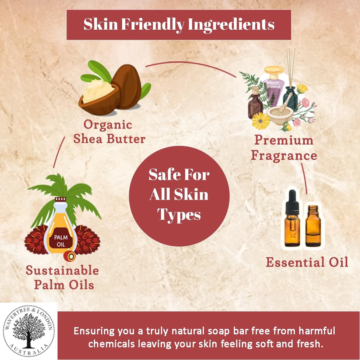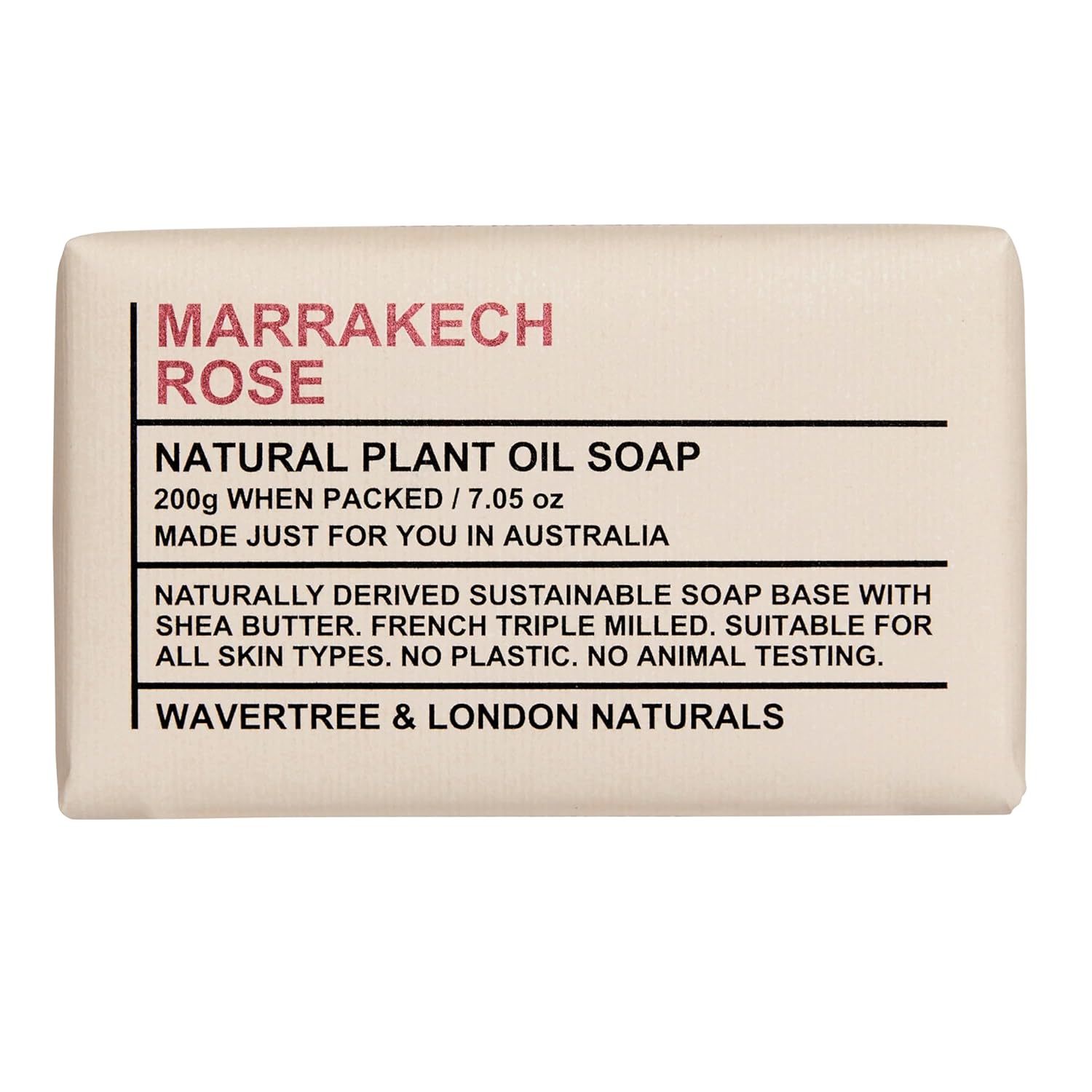 Wavertree & London Marrakech Rose Scented 100% Natural Soap Bar, 7oz Moisturizing French Triple Milled Soap Bar for Women & Men enriched with shea butter - Pure Bath & Body soap bar