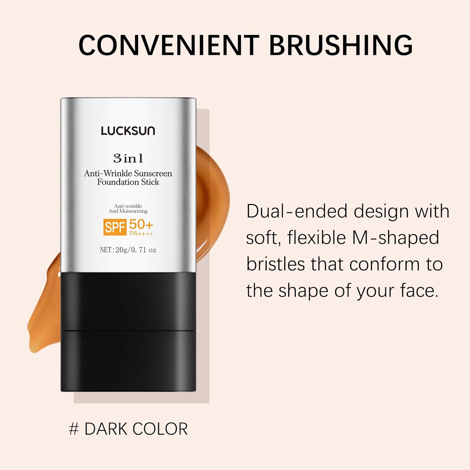 3 in 1 Anti-wrinkle Hydrating Lightweight Foundation Stick Concealer & Makeup, Multi-Use Long-Lasting Formula for All Skin Types (Dark, 20g/0.71oz)