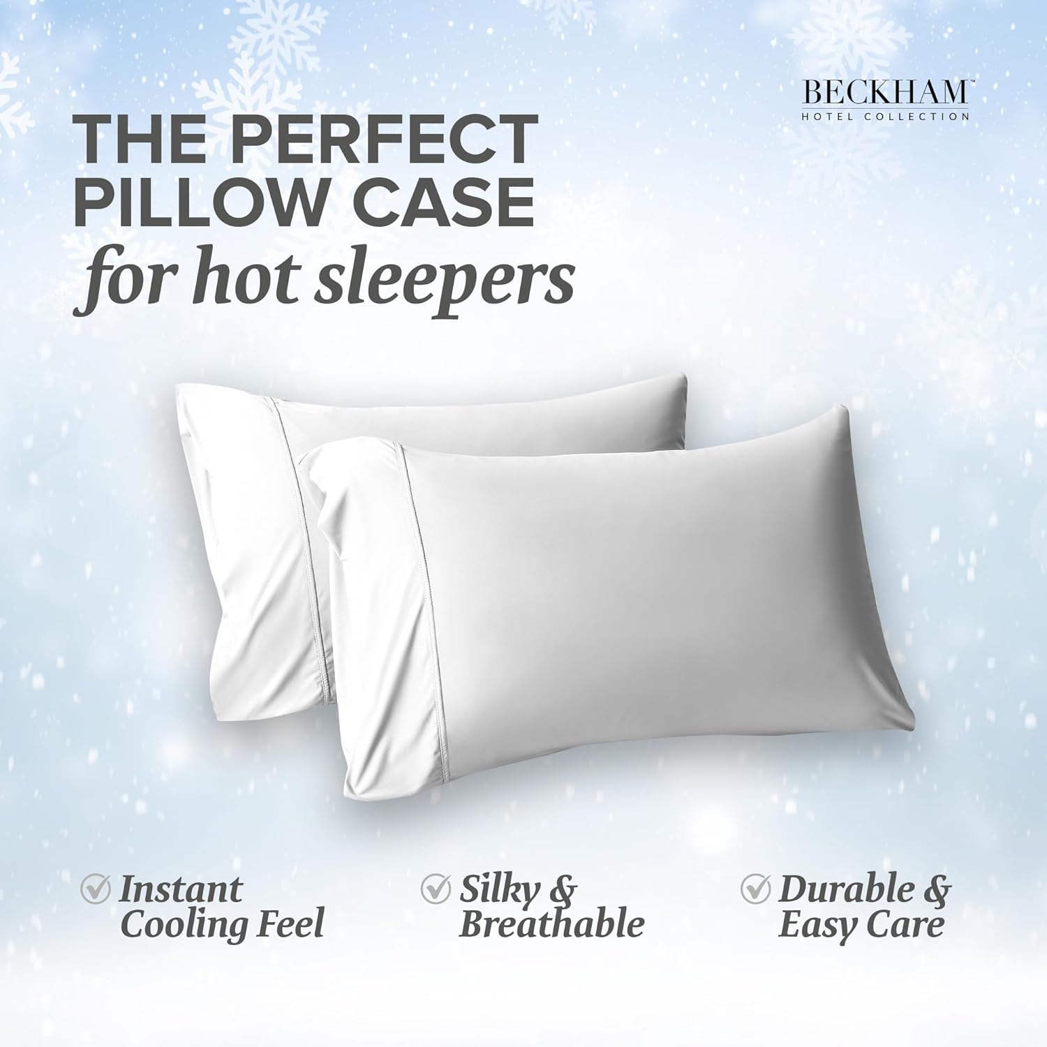 Beckham Hotel Collection Cooling Pillowcases for Hot Sleepers, King Size Set of 2, Cool Bedding, Envelop Closure, Silky Soft, Breathable, Moisture-Wicking, White