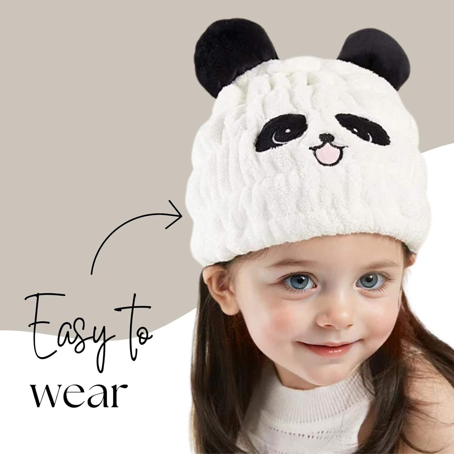 Microfiber Hair Towel Wrap for Kids, Panda Dry Hair Cap Suck Water, Absorbent Quick Girls Boys Hair Drying Towel, Lightweight Bouncy Hat Headscarf for Wet Hair