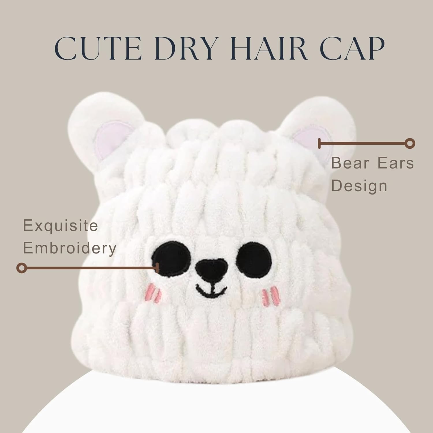 - EASY TO USE - Cute bear shape microfiber bonnet with a new upgraded design, no need to twist and tighten the hair like the traditional dry towel, avoiding the pull on the baby's delicate hair. The dry hair wrap stays securely in place, leaving your child's hands free to do other things.