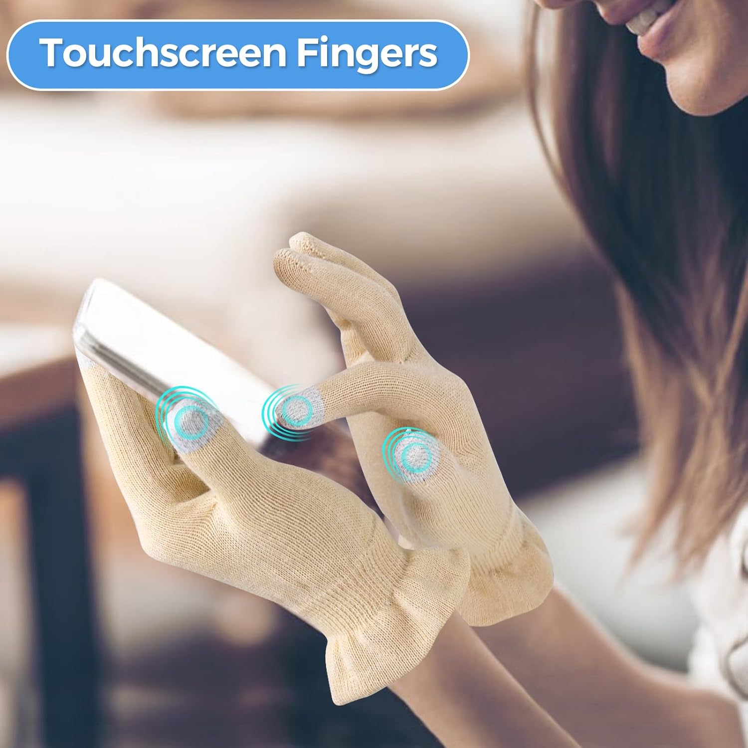 Cotton Moisturizing Gloves Overnight Hand Beauty Gloves Touchscreen Sleeping Gloves (S-Beige, Count, 2)