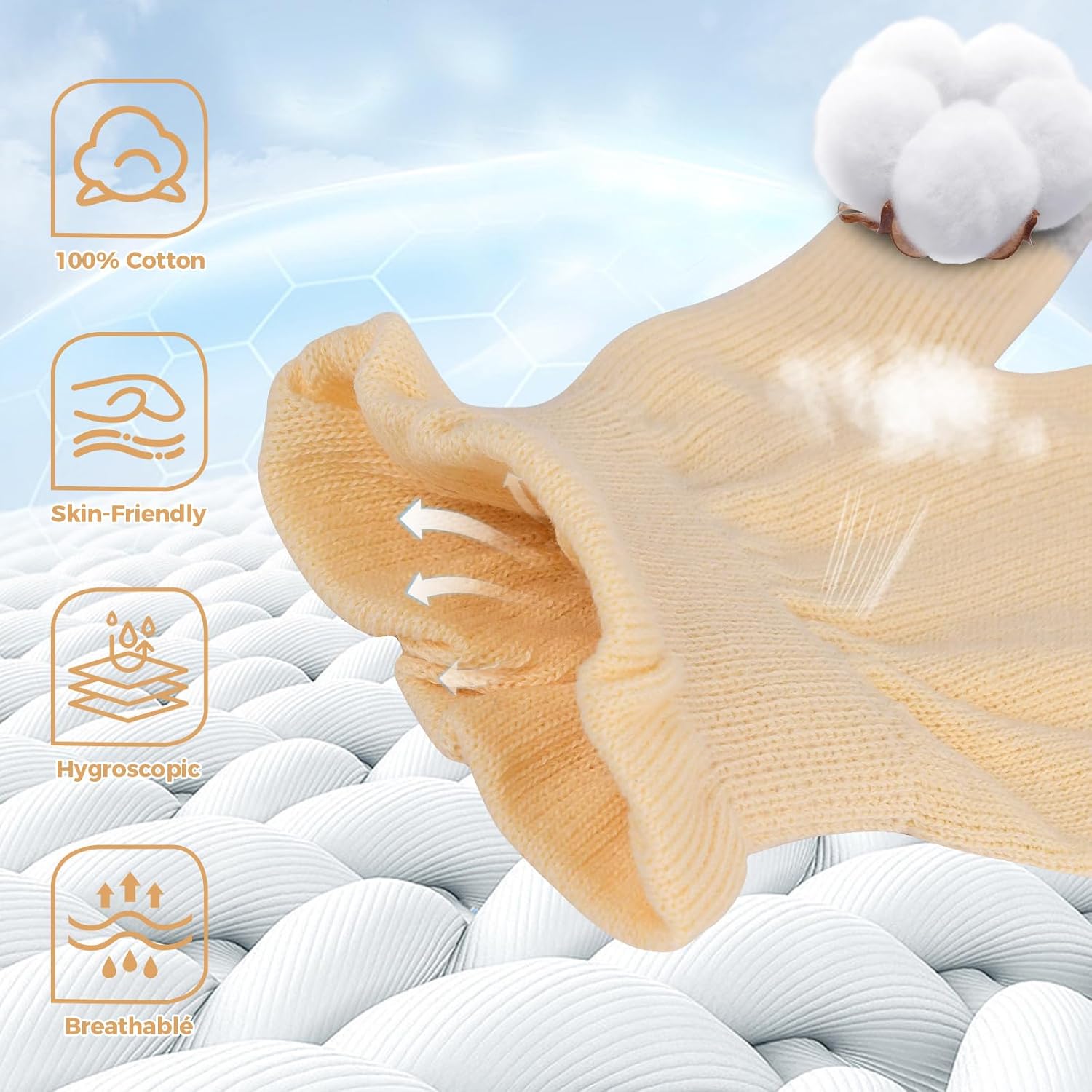 - Efficient Moisturizing:The 100% cotton knitted beauty gloves are hypoallergenic, soft, breathable, and comfortable, helping to lock in moisture and keep your hands hydrated, delicate, and smooth