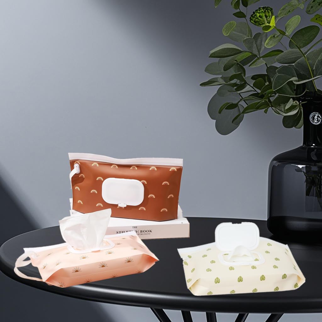 3 Pack Cute Bohemia Stye Baby Wipes Dispenser Portable Refillable Travel Wet Wipe Bag for Indoor Outdoor Sports Travelling Hiking Pet Care