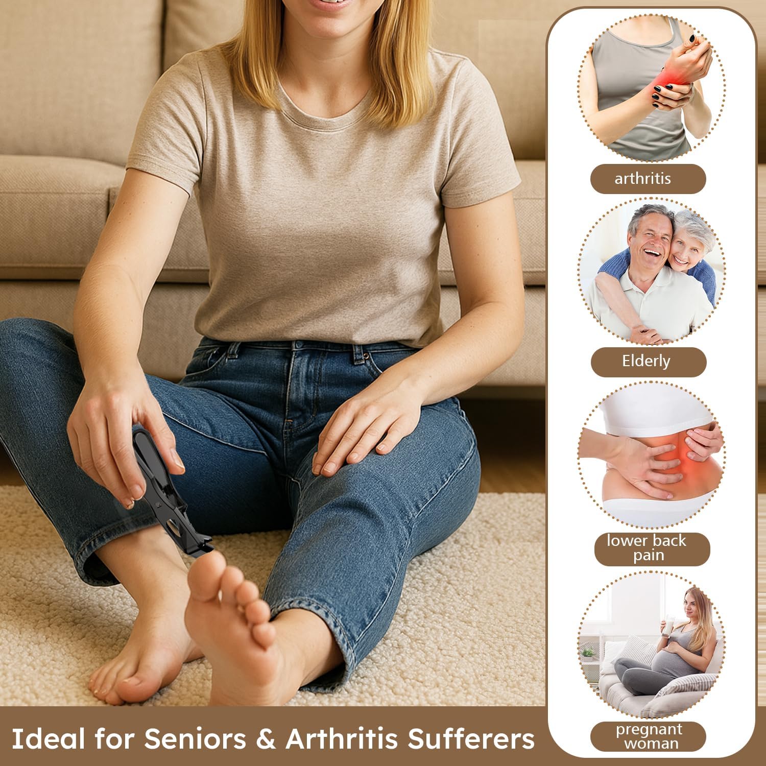 - Angled Head Toe Nail Clippers with Catcher – Designed with an angled head, these toenail clippers for seniors provide a clear view of the blade and nail, making it easier to trim accurately and safely—no more blind cutting or awkward positions. Perfect for seniors, pregnant women, or anyone with limited flexibility. These ergonomic nail clippers for men and women also feature a built-in catcher to keep clippings contained and mess-free.