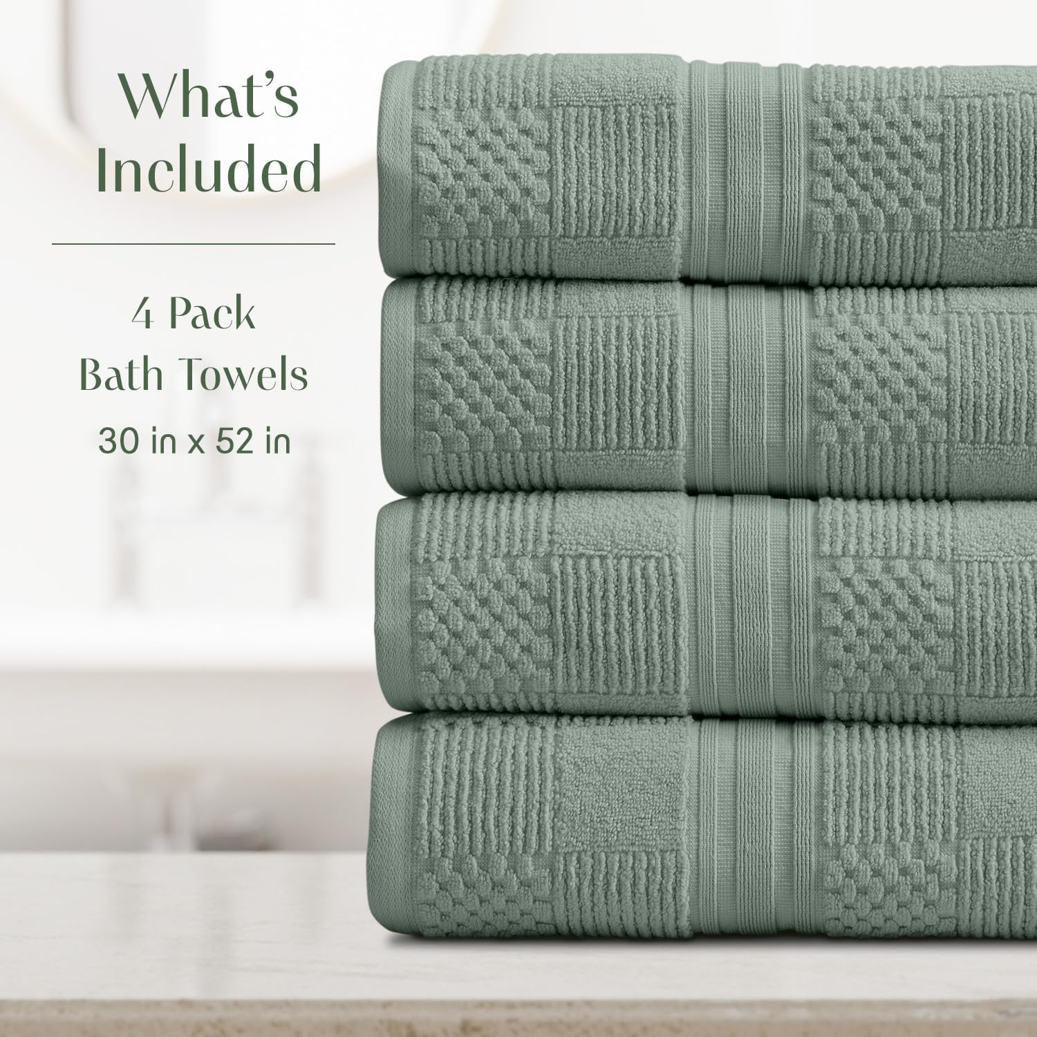Springtree Home 100% Cotton Bath Towel Set of 4 | Green Bath Towels | Geometric Textured Design | Absorbent & Quick-Dry | 4 Bath Towels | Oeko-TEX® Standard 100 Cotton | Myla Collection - Lily Pad