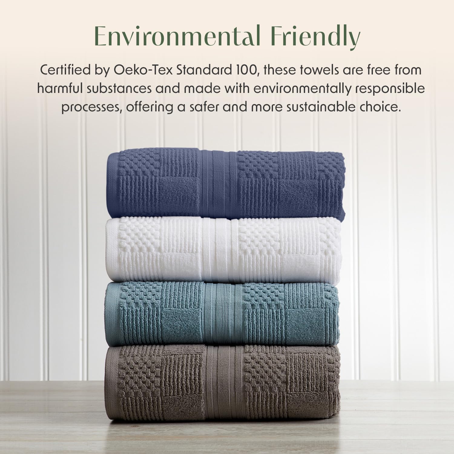 Springtree Home 100% Cotton Bathroom Towel Set | 6 Piece Set - Blue Towels | Geometric Textured Design | Absorbent & Quick-Dry | Oeko-TEX® Standard 100 Cotton | Myla Collection - Indigo