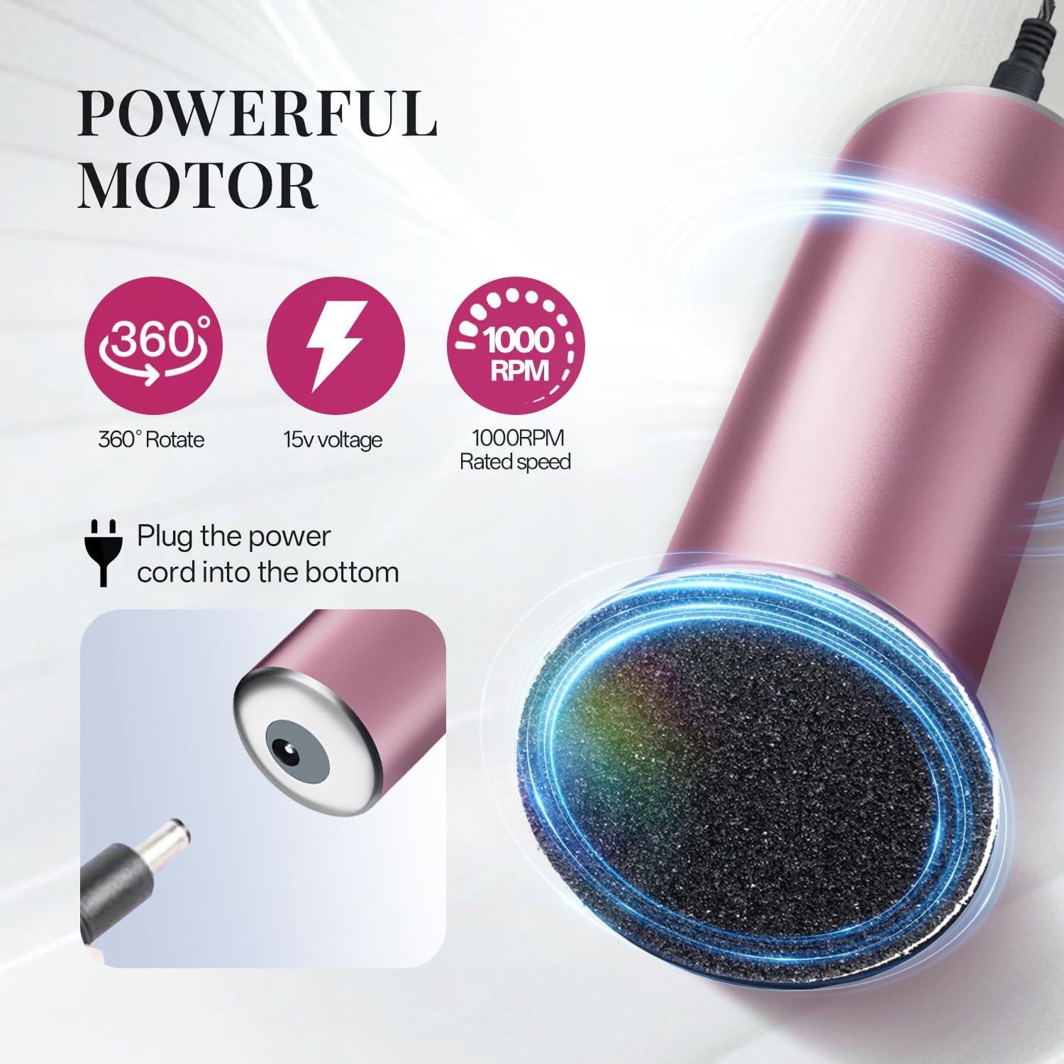 - Complete Pedicure Kit:Contains: 1 electric foot file, 60 sandpapers, power adapter, and instruction manual. Suitable for home use and professional salons