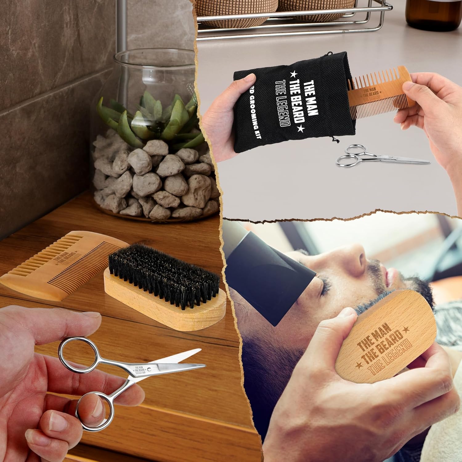 Gifts for Men - Beard Kit Grooming and Care with Brush, Comb, Scissors & Storage Bag - Anniversary Retirement Gifts for Men, Husband Birthday Gift Ideas