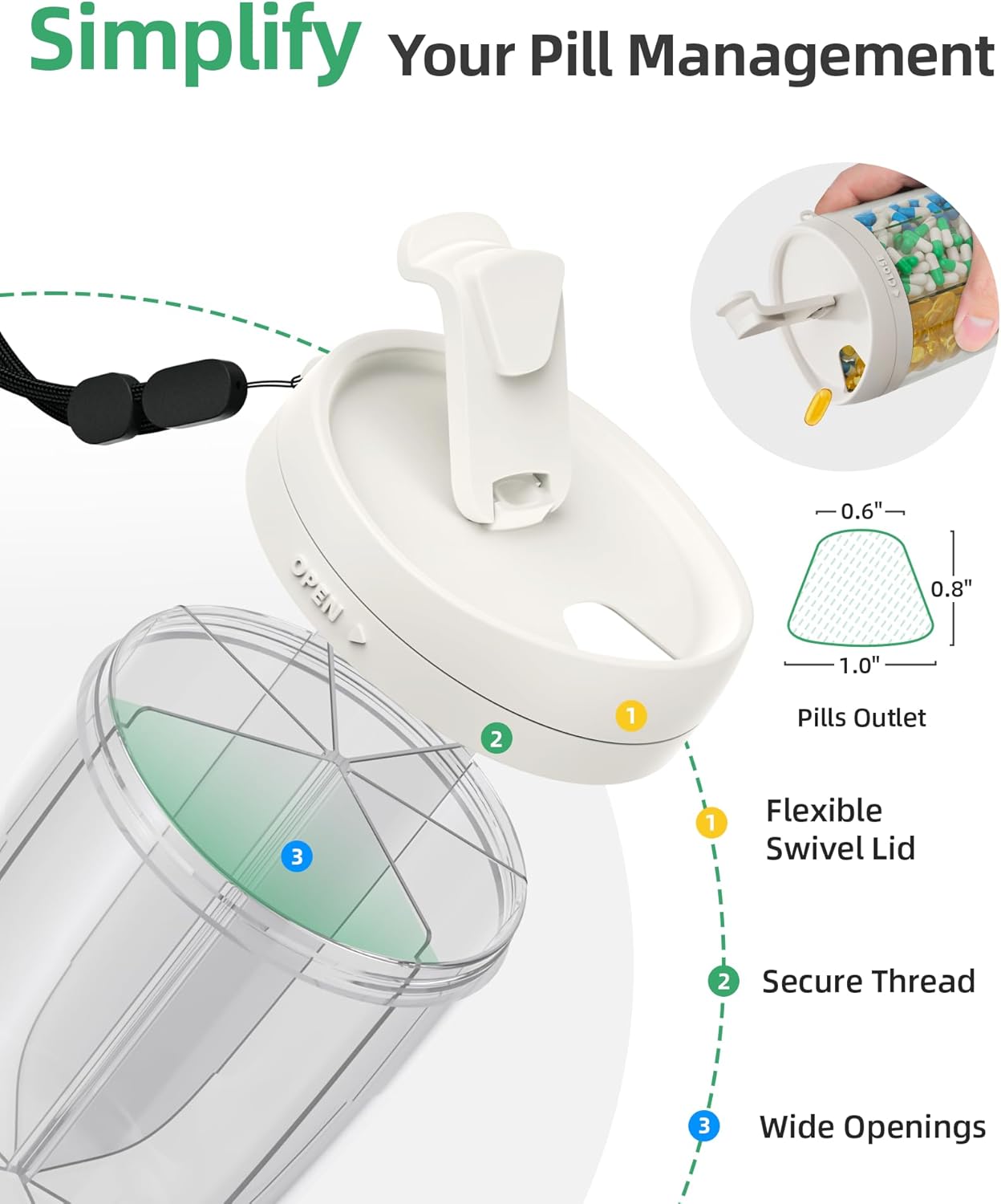 - Easy to Retrieve: The smooth-loosing thread and lid can swivel flexibly, and the wide openings are friendly for taking pills. With the above 3 thoughtful and unique designs, the large pill organizer makes filling and taking medication effortlessly