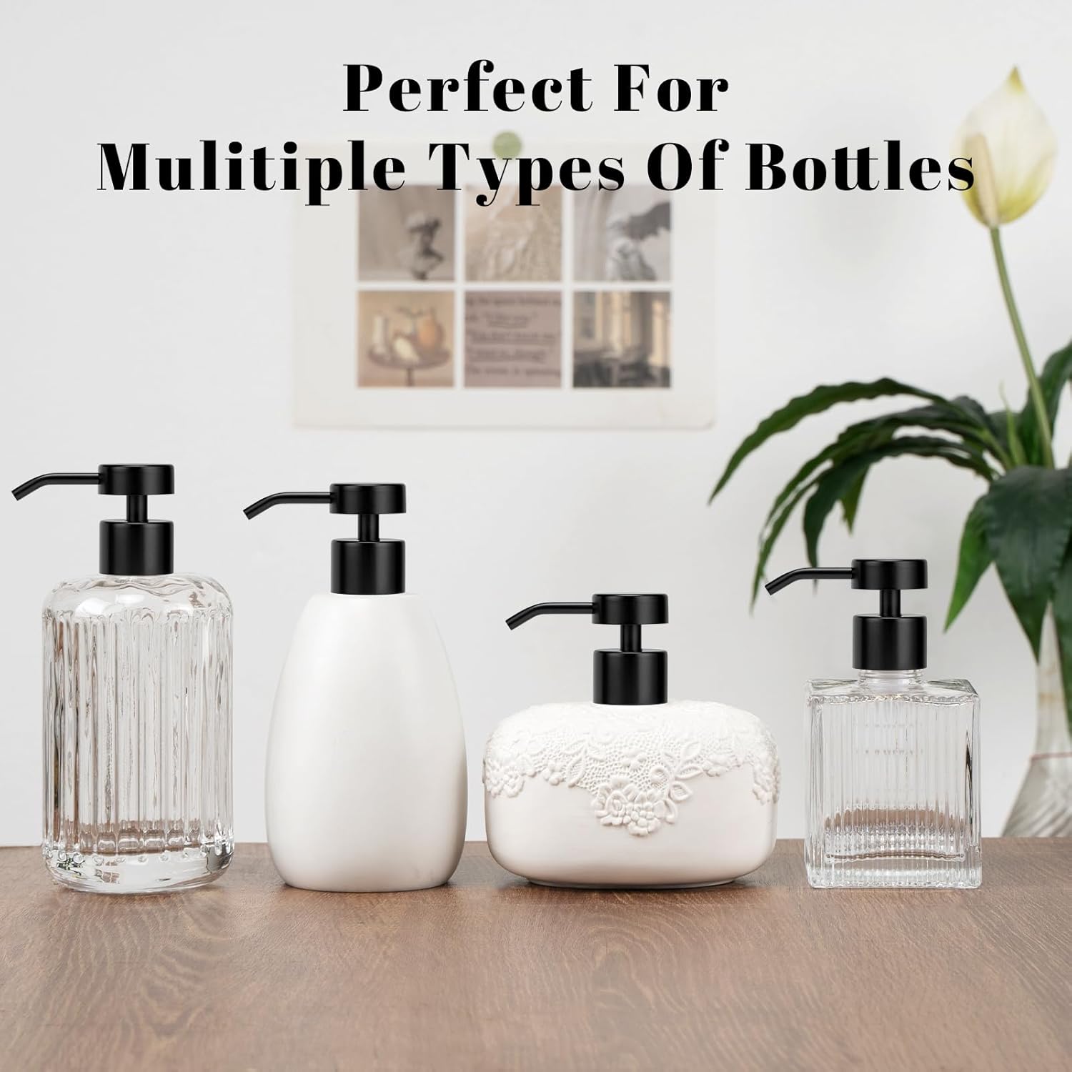 Soap Dispenser Pump Replacement 304 Stainless Steel for Regular Mouth Bottle for Standard 28/400 Thread Size Kitchen Bathroom Lotion Refill Flat Top Dispenser Pumps 2 Pack(Black)