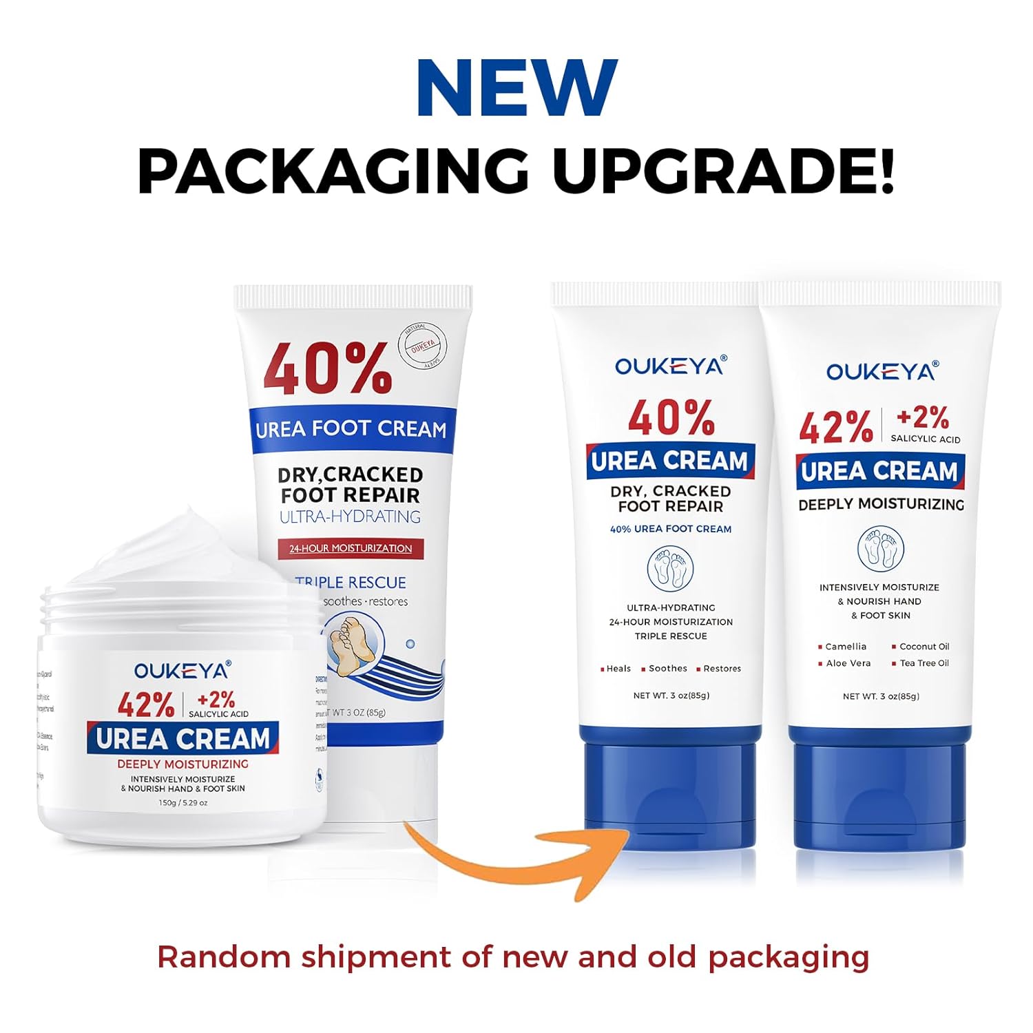 - 【Natural Ingredients】OUKEYA urea cream is packed with 42% urea plus Salicylic Acid 2% that is perfect ingredients for foot problems. The urea cream also includes many natural ingredients like Glycerin, avocado, sucrose, corn starch which are excellent ingredients for nourishing, moisturizing, soften and repairing the dry and cracked skin.