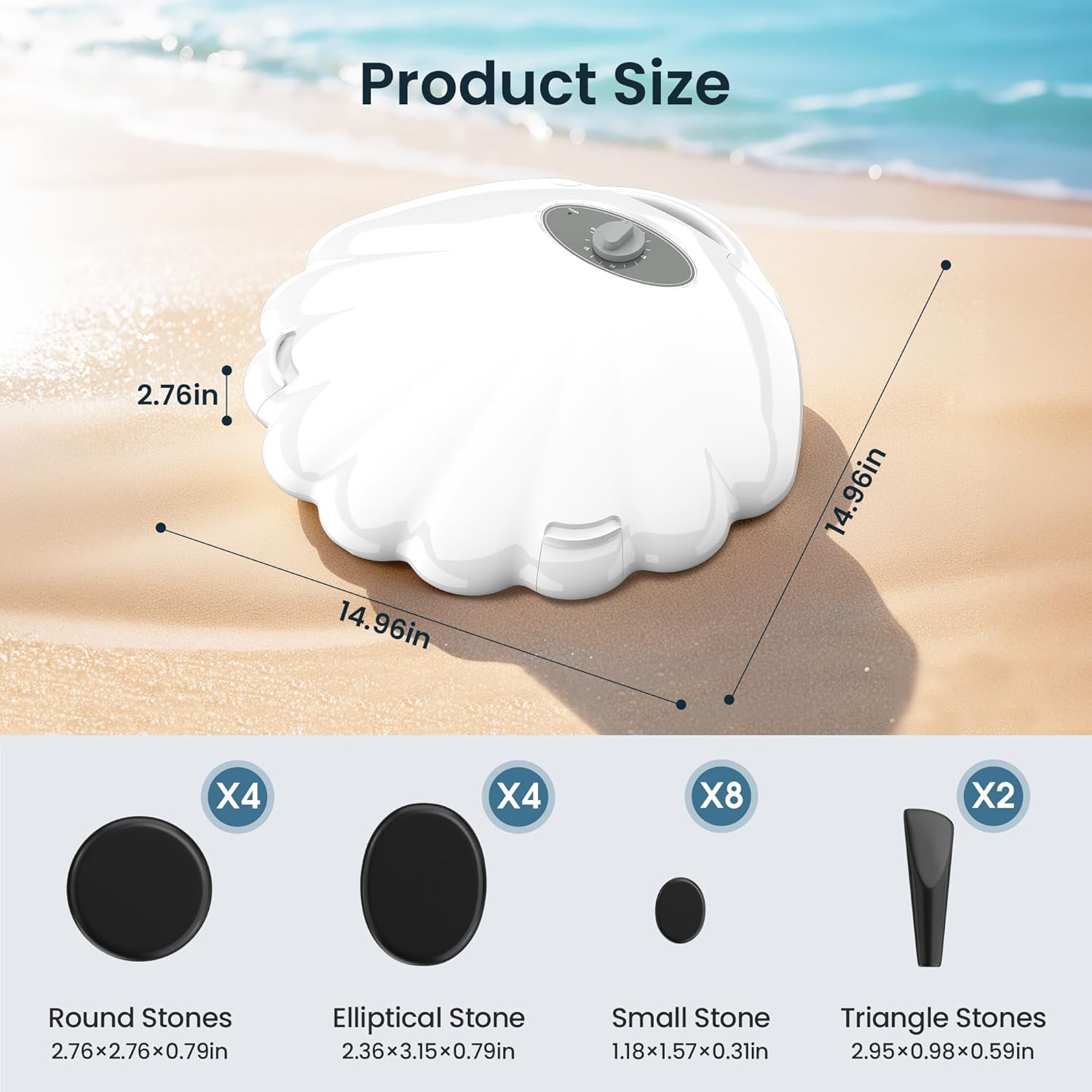 Shell Hot Stones Massage Set, 18-Piece Basalt Hot Stones with Heater Kit, Featuring an Elegant Seashell Design for Spa Use. Perfect for Relaxation, Healing, and Pain Relief. (White)