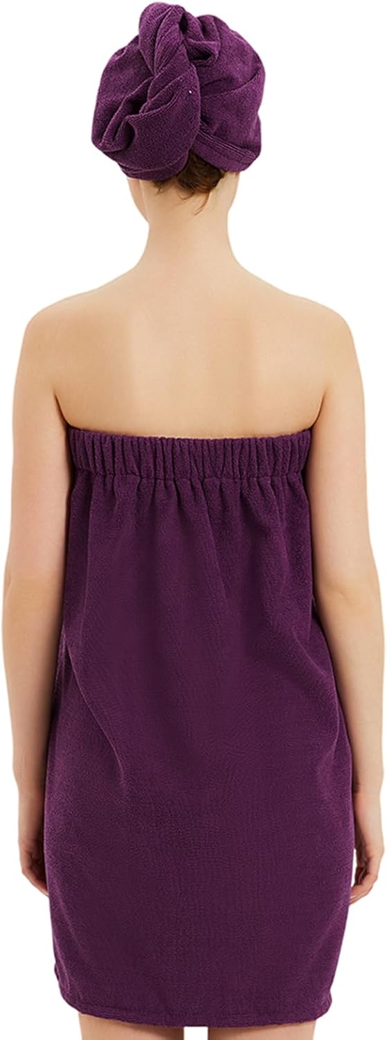 Womens Bath Body Wrap & Hair Towel Shower Spa Wrap Robe Adjustable Closure Bathrobe