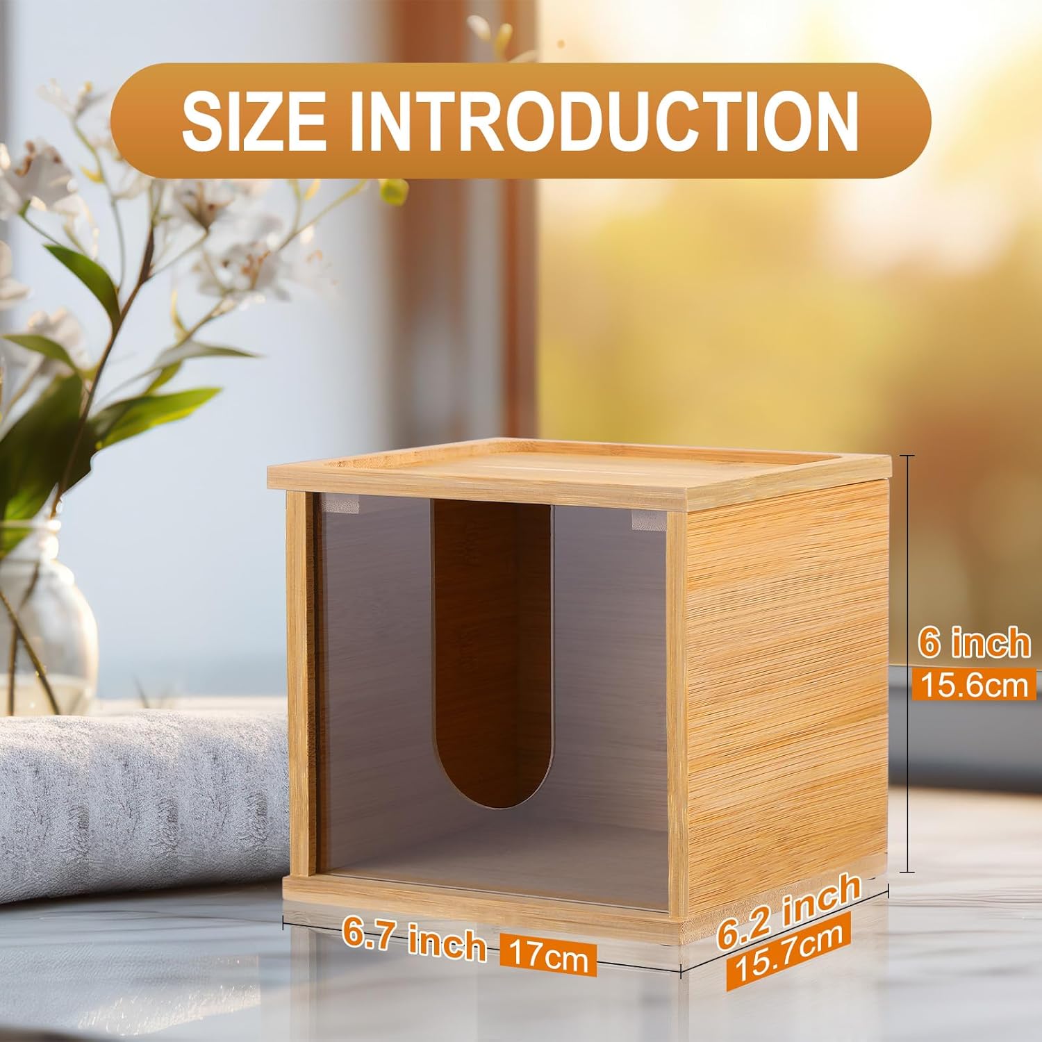 - Innovative Design: crafted with clear acrylic and sustainable bamboo, this dual material facial towel holder design blends aesthetics with functionality; The front acrylic panel adopts a card slot connection method and the front and back acrylic panel can be pulled up enabling versatile access to your skincare essentials, while the clear board offers full visibility of towel usage; The U shaped entry allows single hand retrieval of wipes