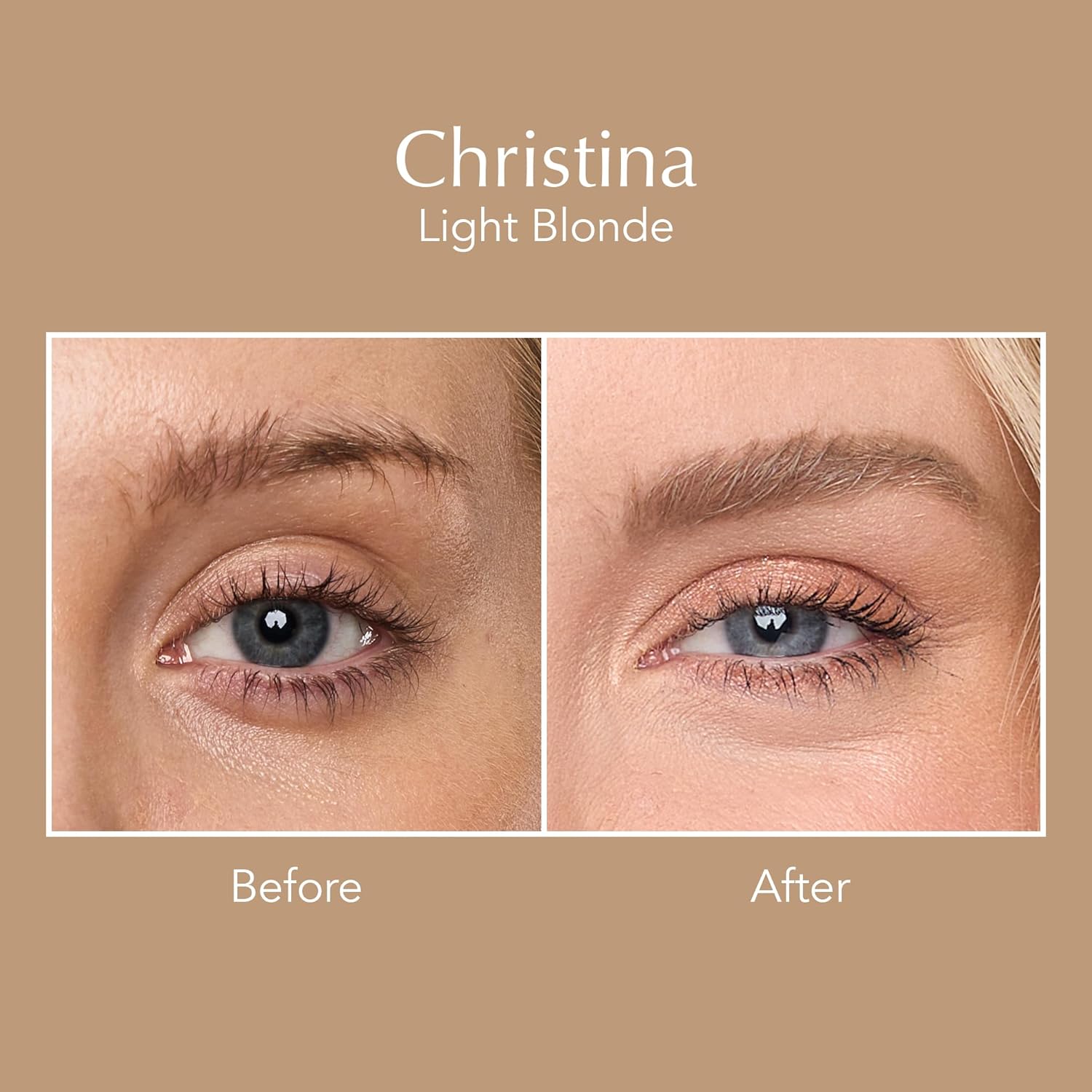- NATURAL DEFINITION: Achieve full, defined brows with this tinted gel that enhances the shape and fills in sparse areas. It provides a soft, flexible hold for a natural look and is available in 8 inclusive shades to match a variety of brow tones. Christina (Light Blonde) is perfect for silver or light to dark blonde eyebrows.