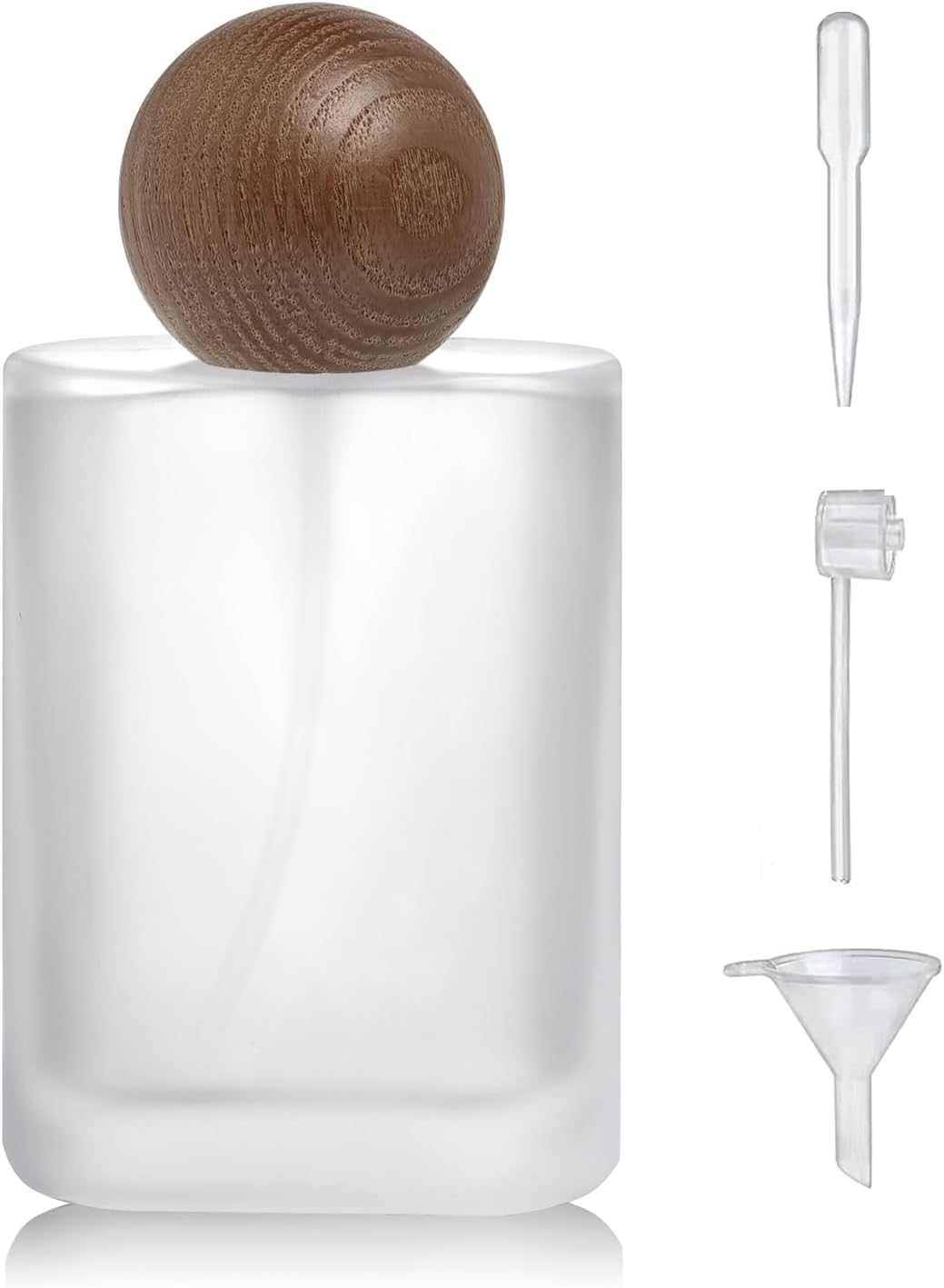 - Package:1 Pack 50ml(1.7Oz)Frosted Glass Perfume Spray bottle and and 3 kinds of perfume dispenser(1 funnel,1 dropper,1 transferer).It is easy to dispense liquid into the perfume atomizer.
