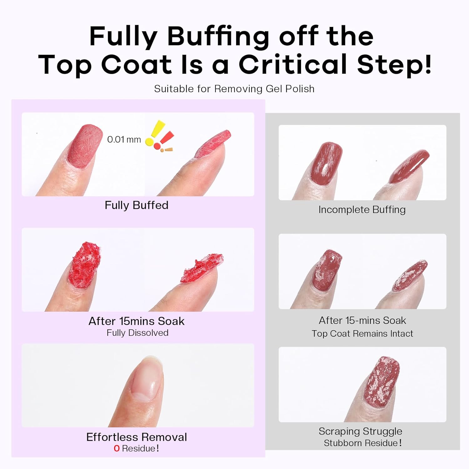 - Quick & Easy Removal: Nail polish wipes effectively breaks down regular and gel polish. Press firmly for 3–5s, then fingernail polish remover pads—dramatically reducing removal time and simplifying the process.