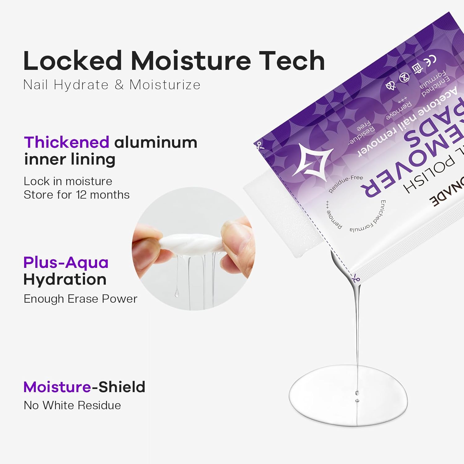 - Hydration & Nourishment: Enriched with grape seed oil to moisturize nails and cuticles, keeping them shiny and healthy. An upgraded foil layer seals in moisture for 12 months, ensuring each polish remover pads stays saturated.
