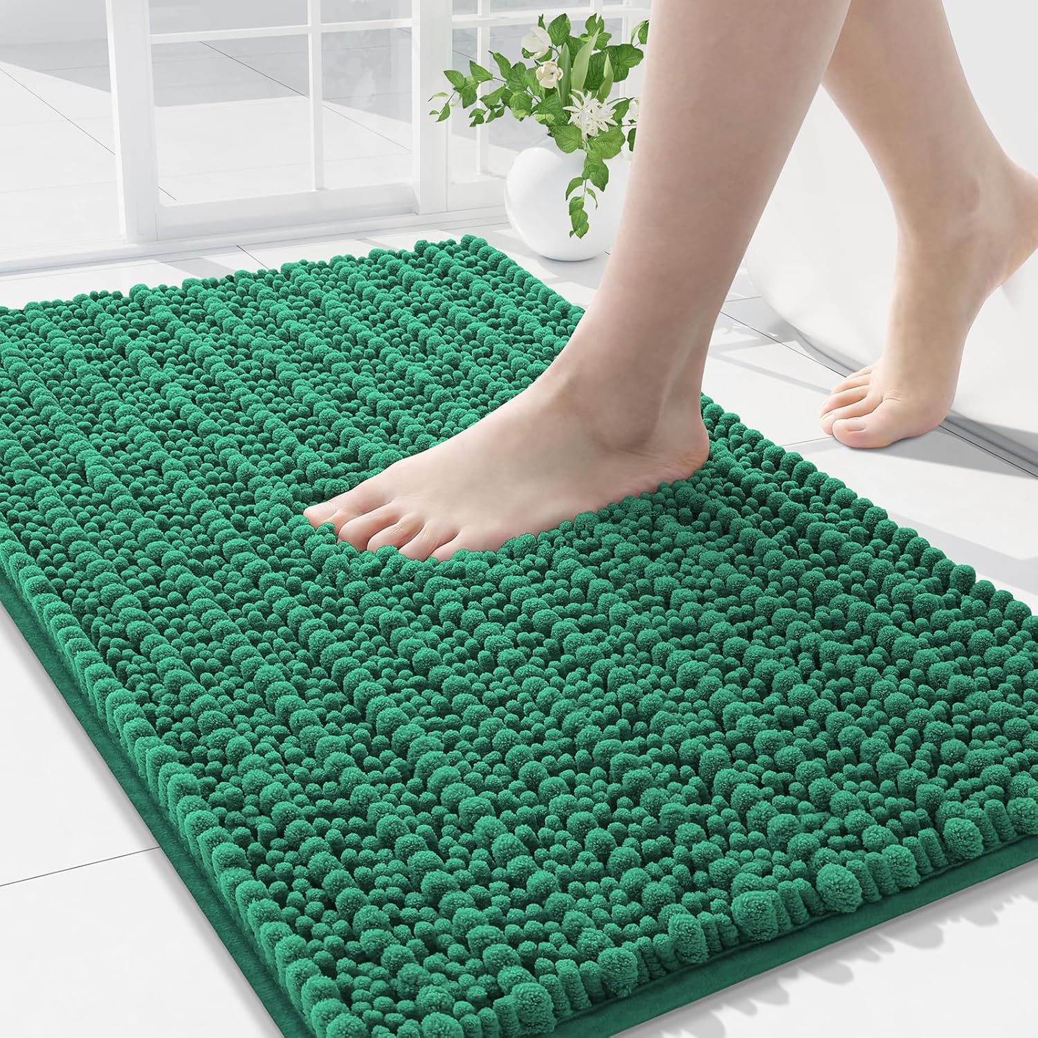 Arotive Luxury Chenille Bathroom Rug Mat, Extra Soft Thick Absorbent Shaggy Bath Rugs, Non-Slip Machine Wash Dry, Plush Bath Mats for Bathroom, Shower and Tub, 30x20, Emerald