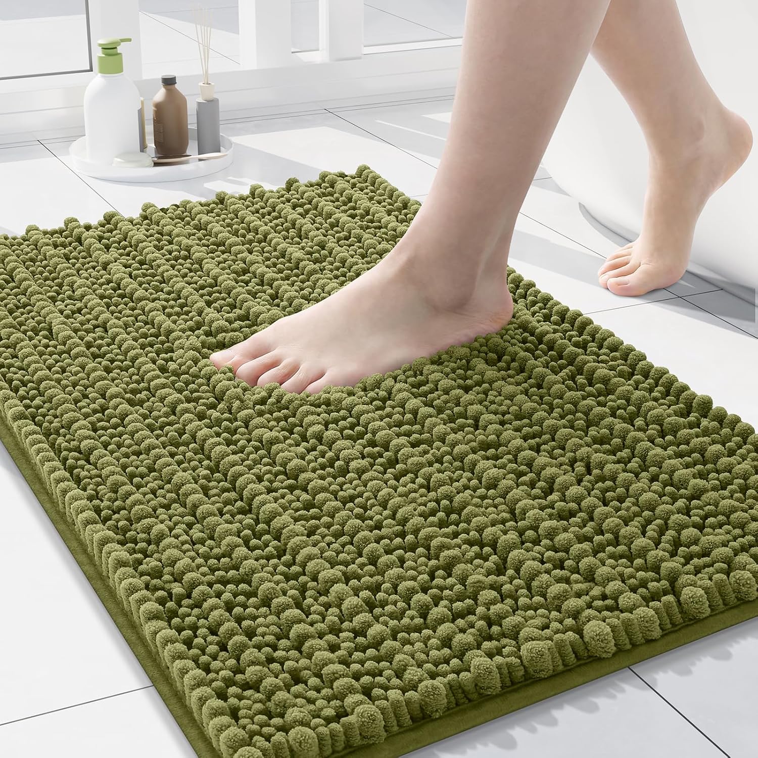 Arotive Luxury Chenille Bathroom Rug Mat, Extra Soft Thick Absorbent Shaggy Bath Rugs, Non-Slip Machine Wash Dry, Plush Bath Mats for Bathroom, Shower and Tub, 24x16, Willow Green