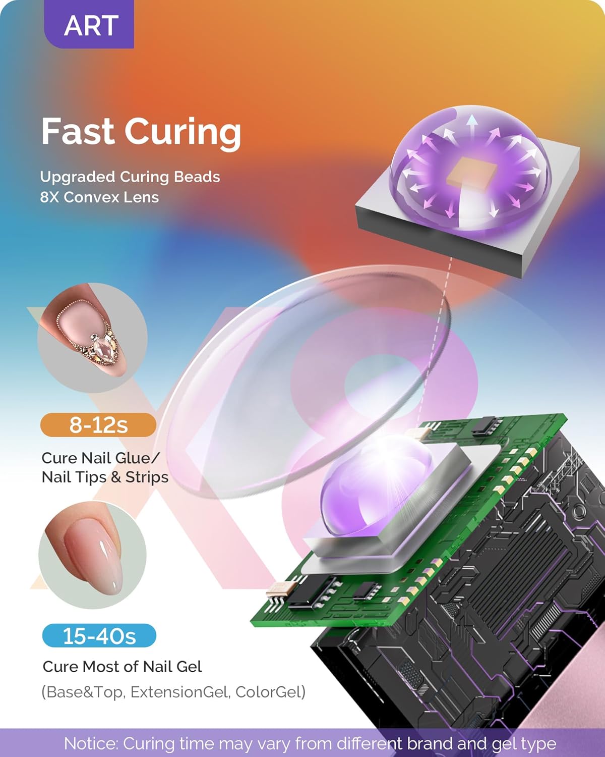- 【Mini Yet Powerful】- Featuring cutting-edge 2025 Innovative Chips.,Melodysusie ART01G flash cure light for gel x nails delivers eight times the concentrated light, cure Rhinestone Glue, 3D Gel Nail designs, and decorations in just 8 to 12 seconds—far quicker than traditional gel types, which can take up to 15-40 seconds. Revolutionary flash curing lamp that will transform your nail art experience!