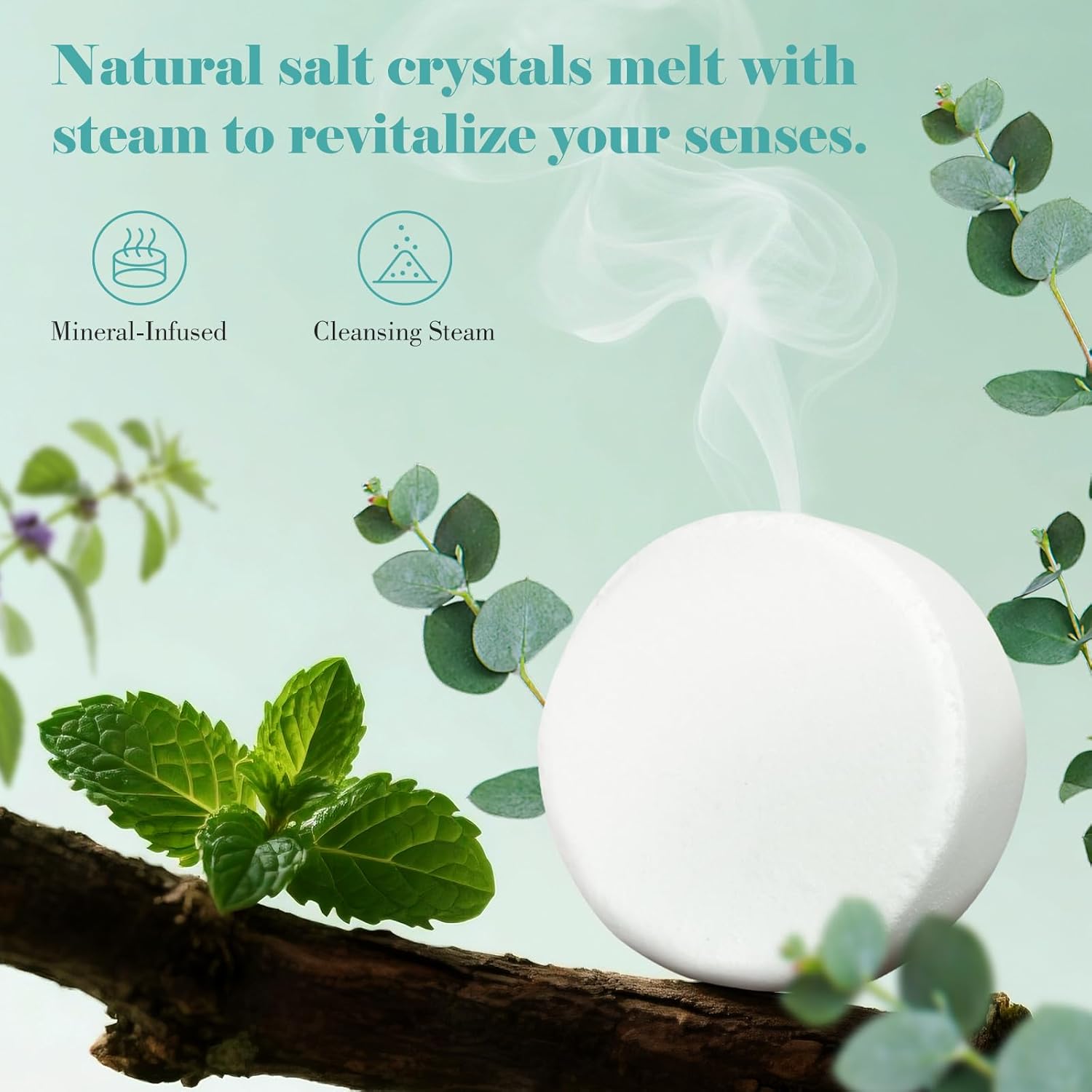 - Clean & Dye-Free Botanical Formula: Crafted without synthetic dyes or additives, these shower steamers contain only naturally derived eucalyptus and mint essential oils. It uses steam-distilled essential oils derived directly from real botanicals, handmade to ensure a cleaner, purer aromatherapy experience.
