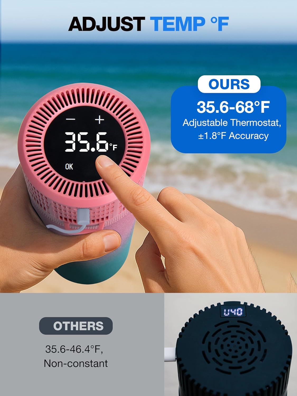 - 🌡️ Adjustable Thermostat & Temp Display - The electric insulin case allows you to manually adjust the inner temperature (from 35.6-68°F , accuracy ±1.8°F) , and maintains constant temp without time limits. It has real-time temperature display to monitor the inner temp and support °C/°F toggle.