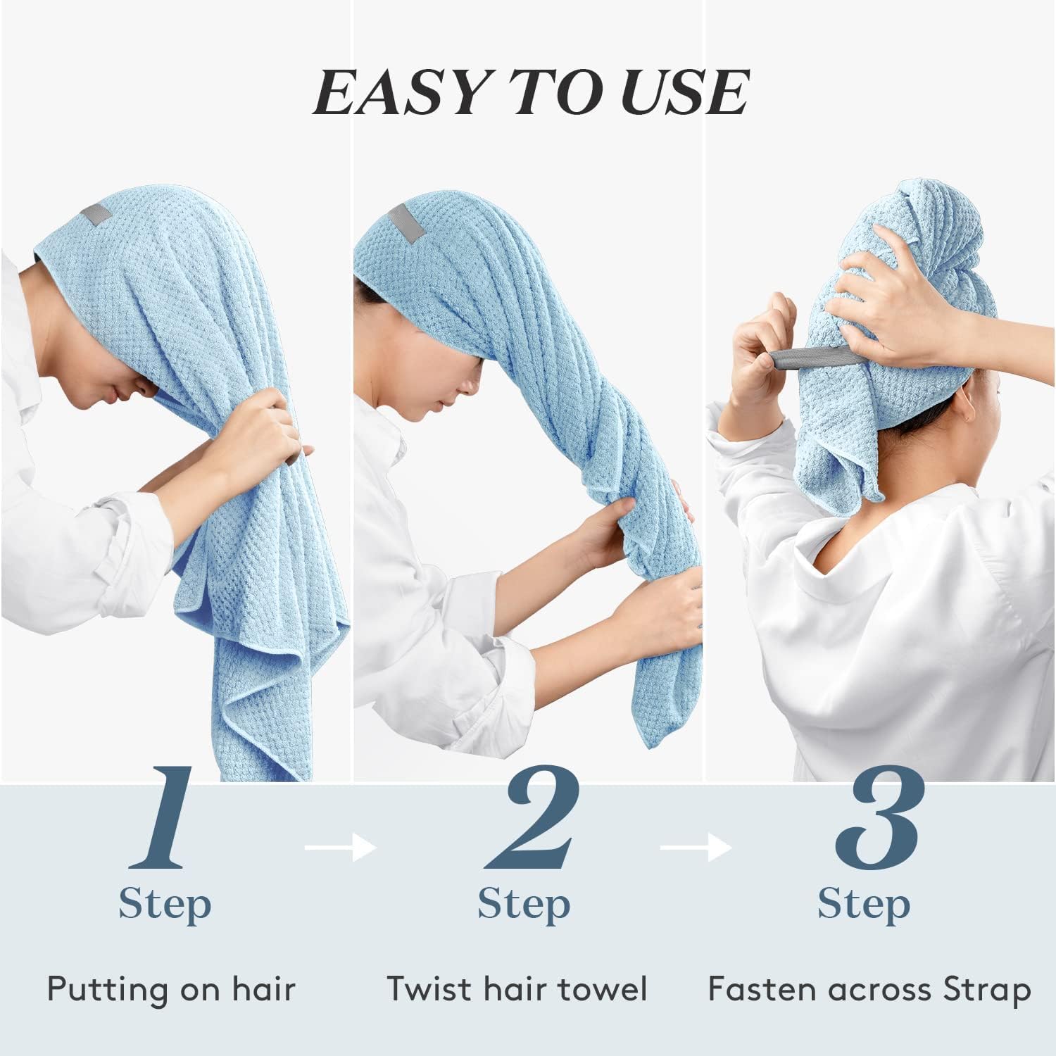 Microfiber Hair Towel Wrap Turban 2 Pack Large | Super Absorbent Quick Dry & Anti-Frizz for Women with Curly Hair | 27.5" x 39.4" Hair Towel Cap