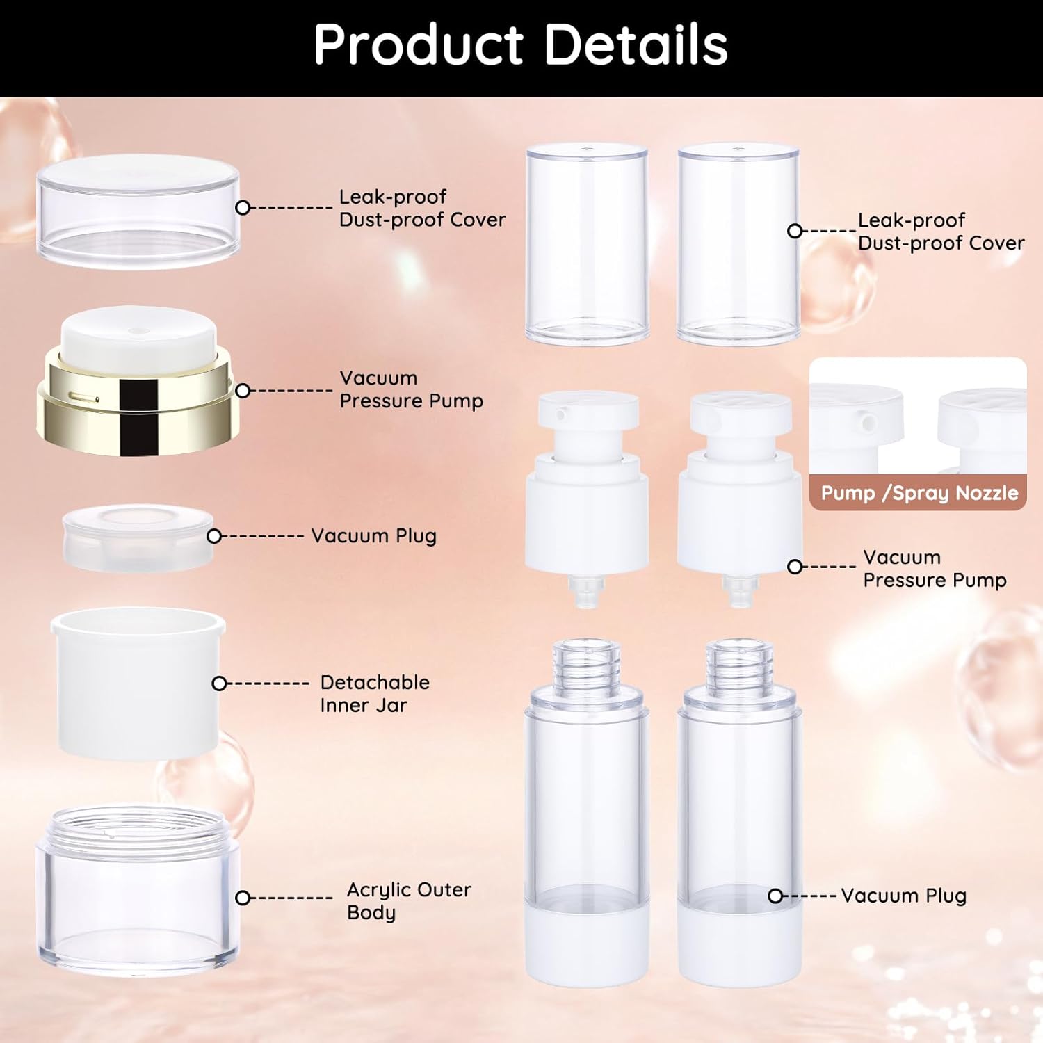 - Airless Design Keeps Fingers Out: The vacuum pump use a straw-free vacuum design to effectively isolate air to keep skincare product fresh. The airless design can also prevents direct finger touch, keeping your liquids clean